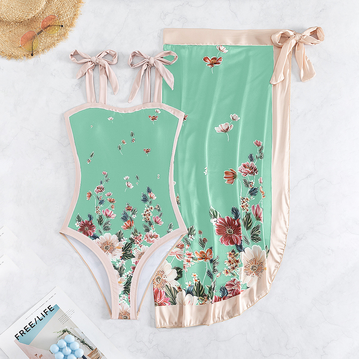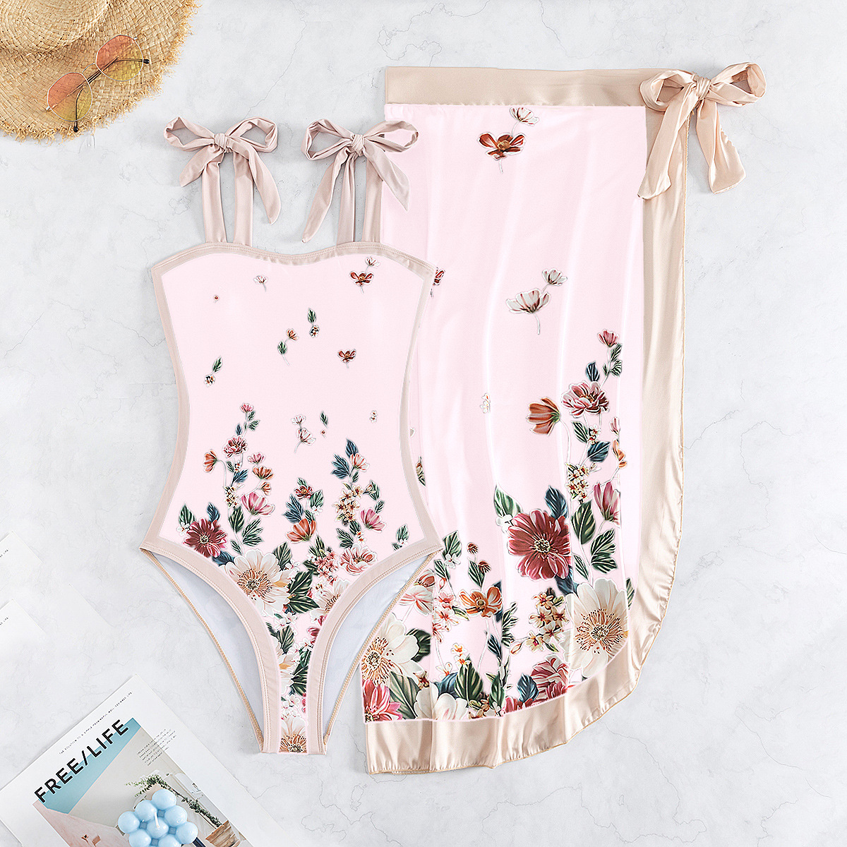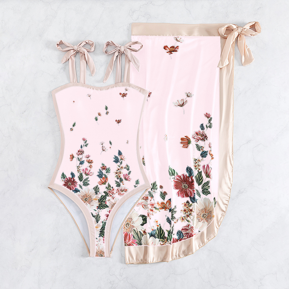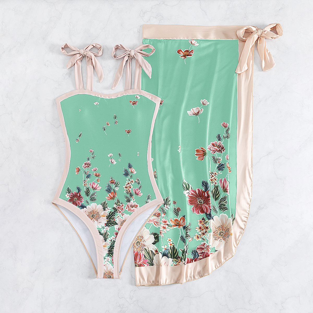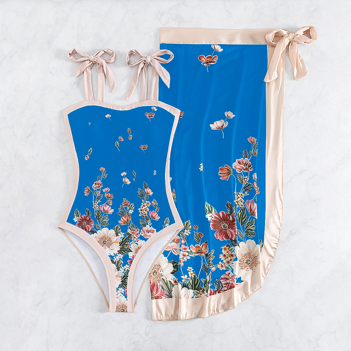 Mesh Two Piece French Swimsuit Digital Printing Sheath Dress Swimsuit for Women Bella Mia