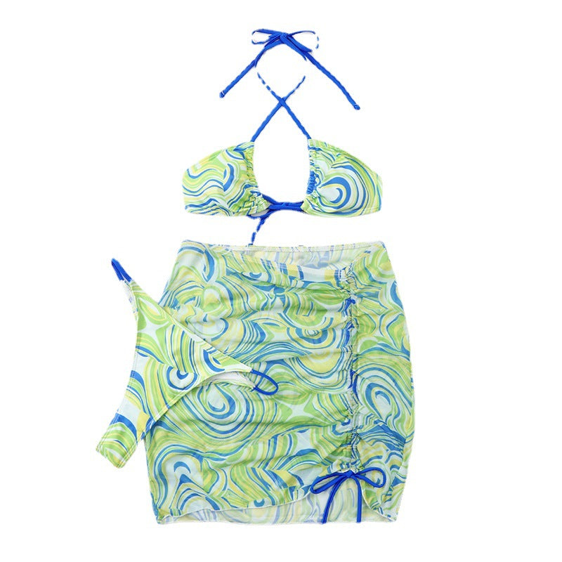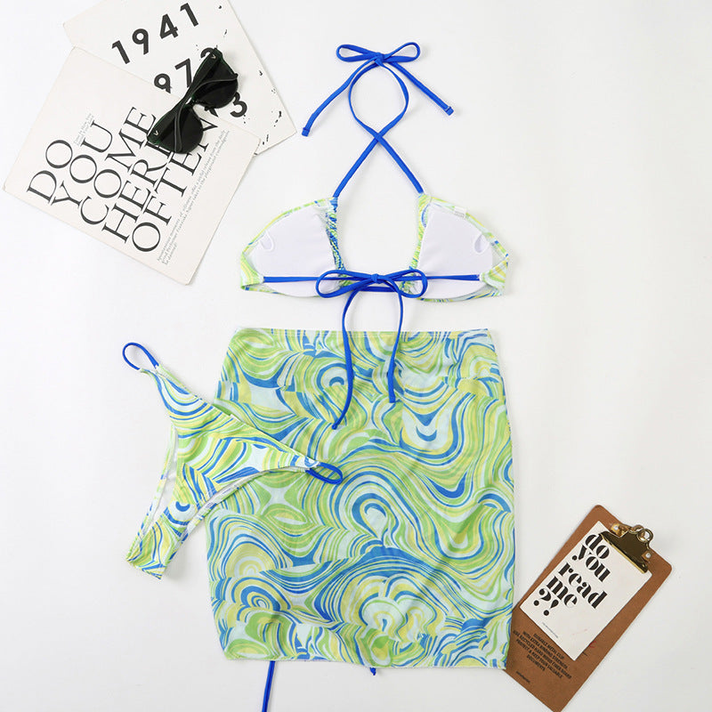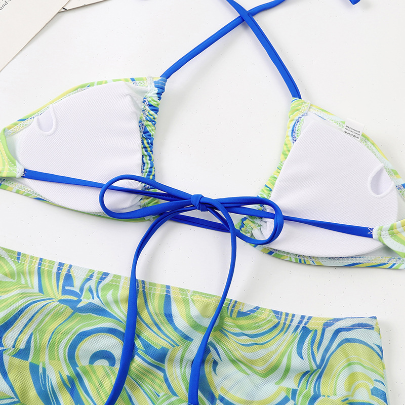 Mesh Women Split Strap Triangle Sexy Bikini Halter Swimsuit