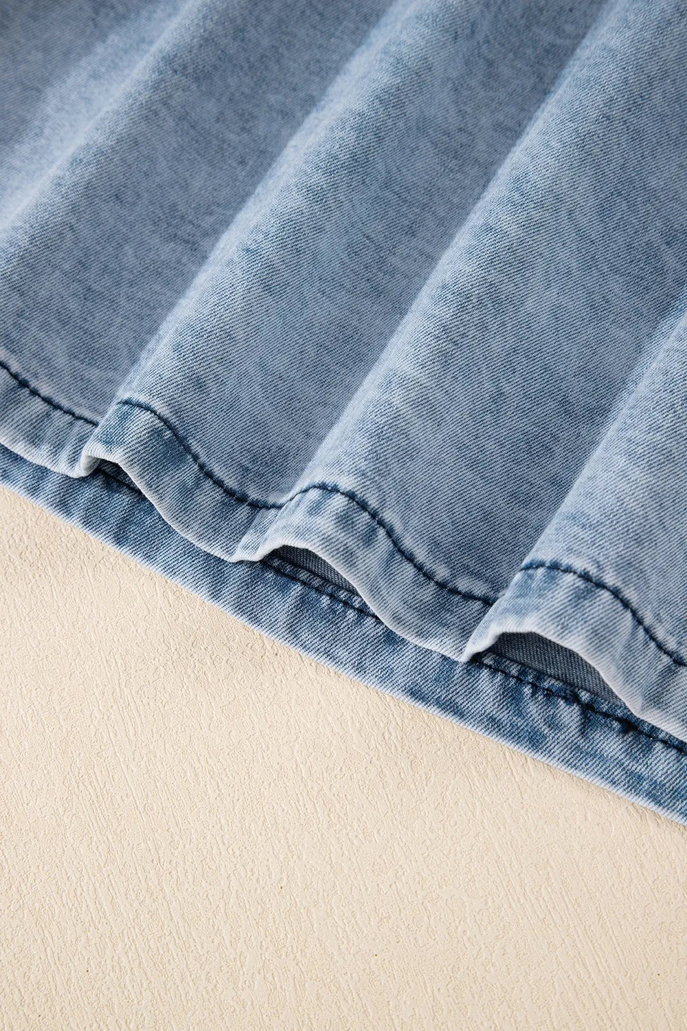 A mineral-washed denim sleeveless top with a frayed U-neck and a raw hem. Crafted from a 75% cotton, 25% polyester blend, it delivers a crisp, structured silhouette with durable comfort. The sleeveless design makes it ideal for warm days and casual layering.