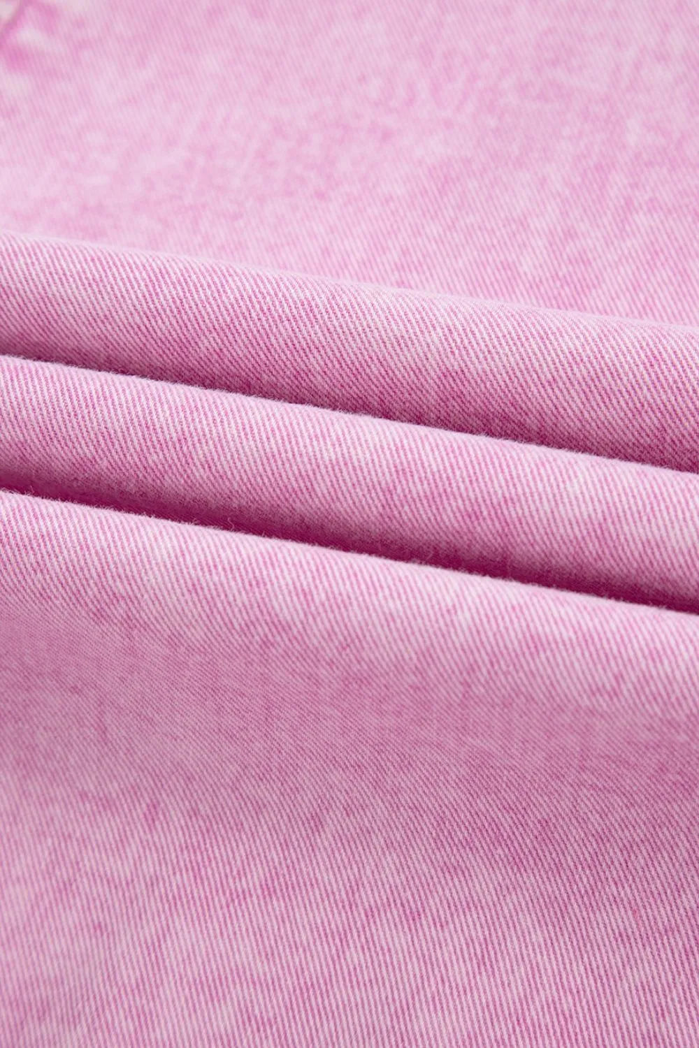 Experience casual chic with this pink mineral-wash denim romper. It features a sleeveless silhouette and a V-neck with a self-tie front, creating a subtle keyhole detail. The pleated bust adds soft structure, while the non-stretch, 100% cotton denim offers breathable comfort and a crisp drape. Side pockets provide practical storage, and the relaxed A-line shape finishes above the knee for easy movement.