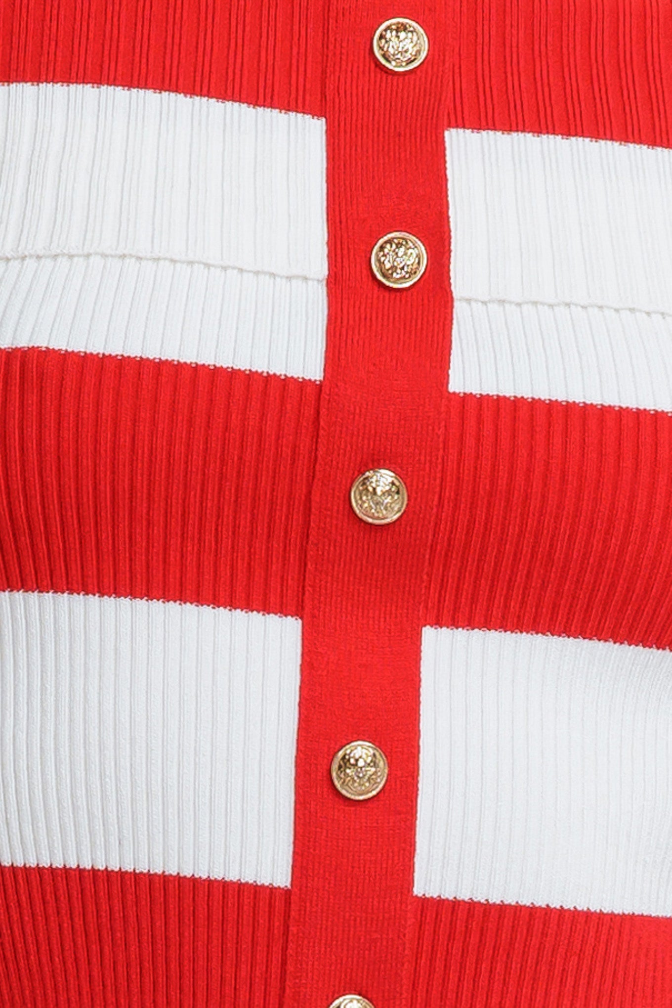 Red Knit Crop Top Off Shoulder Striped Button Down Top