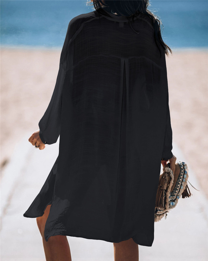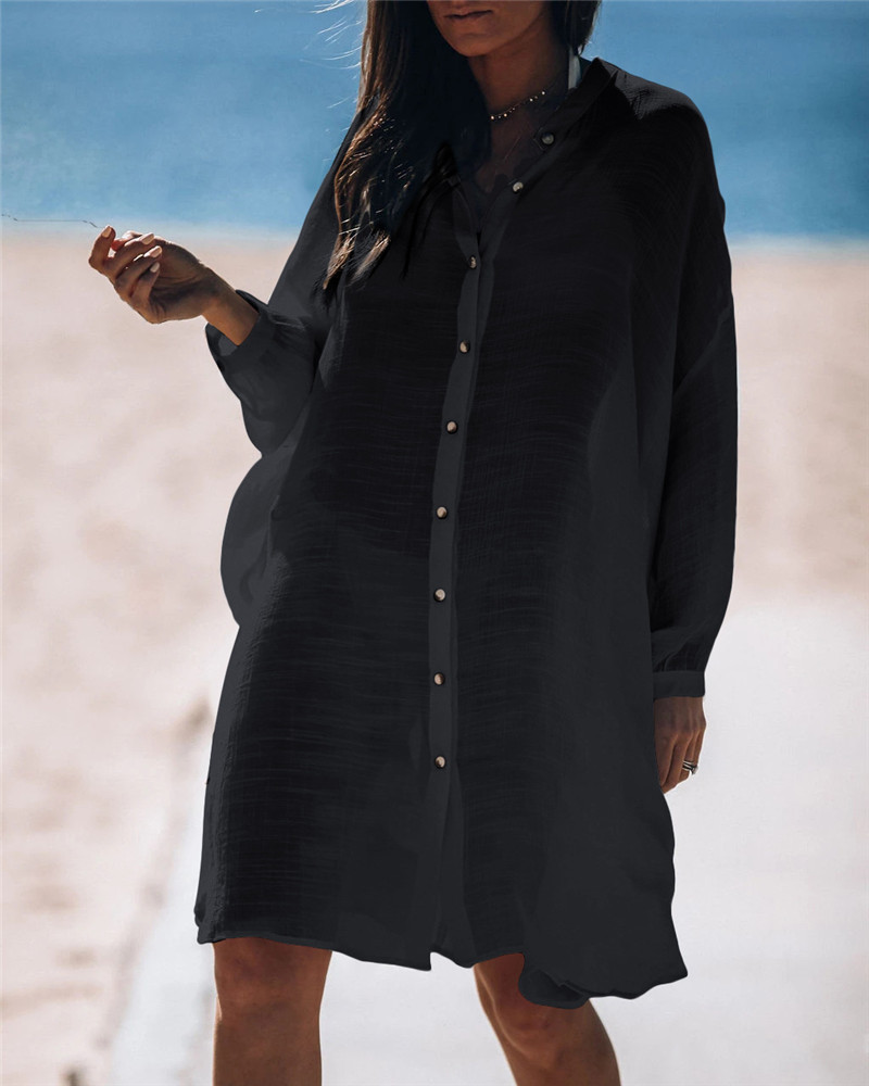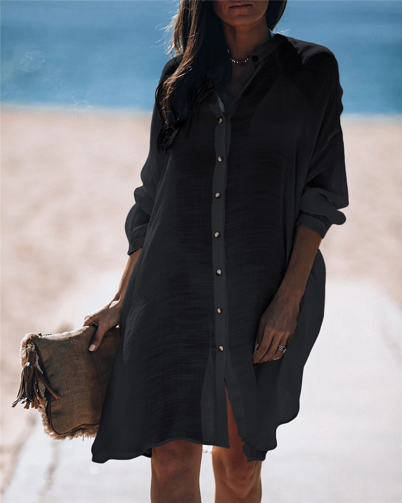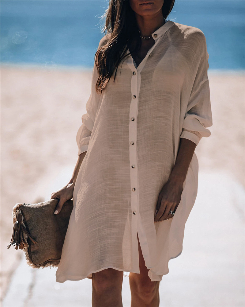 New Bamboo Shirt Single-Breasted Beach Sun Protection Shirt Seaside Casual Vacation Skirt