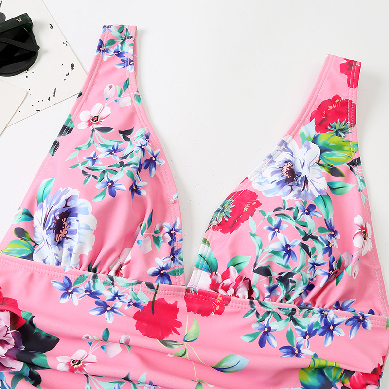 One Piece Women Triangle High Waist Multi Color Printed Swimsuit Domestic Conservative Swimsuit Swimwear