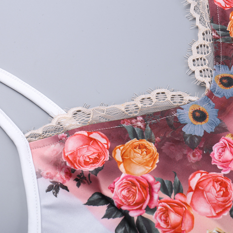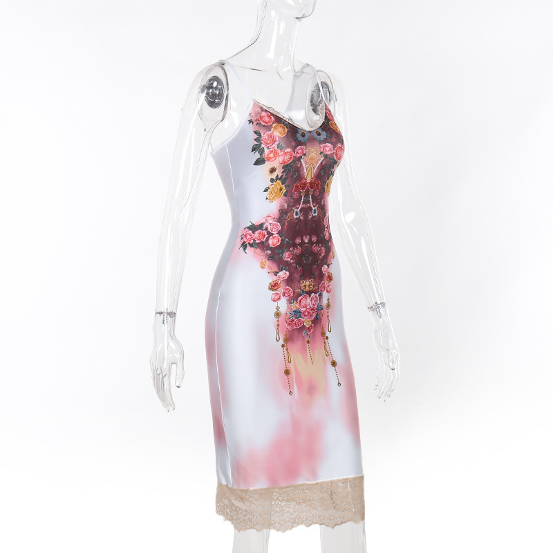 Personalized Printed Lace Lace Spaghetti Strap Dress Spring Slim Fit Maxi Dress