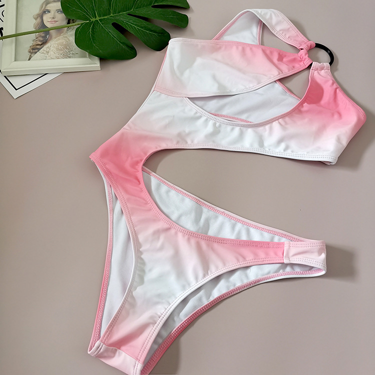 Pink Blooming One Piece Ring Sexy Swimsuit Hollow Out Cutout Bikini