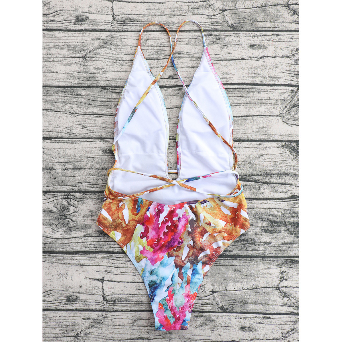 Products One Piece Swimsuit Printed Tape Chest Pad Women One Piece Swimming Sexy Beachwear