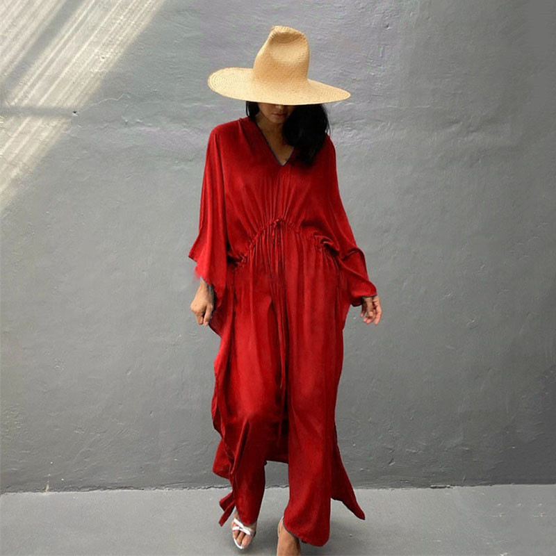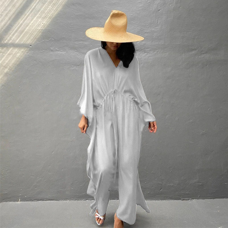 Rayon Loose Sexy Split Beach Cover Up Waist Pull Belt Vacation Skirt Bikini Cover