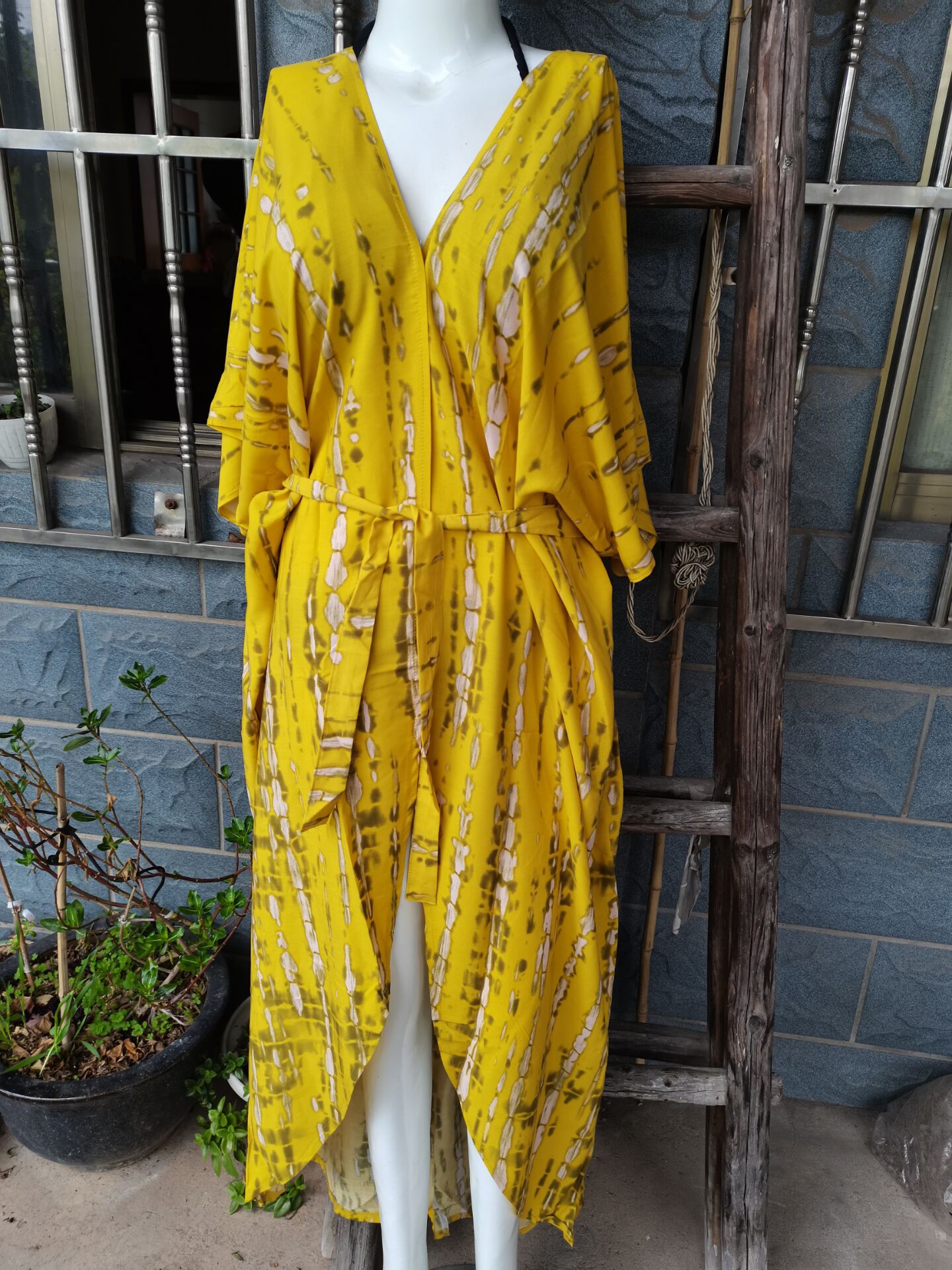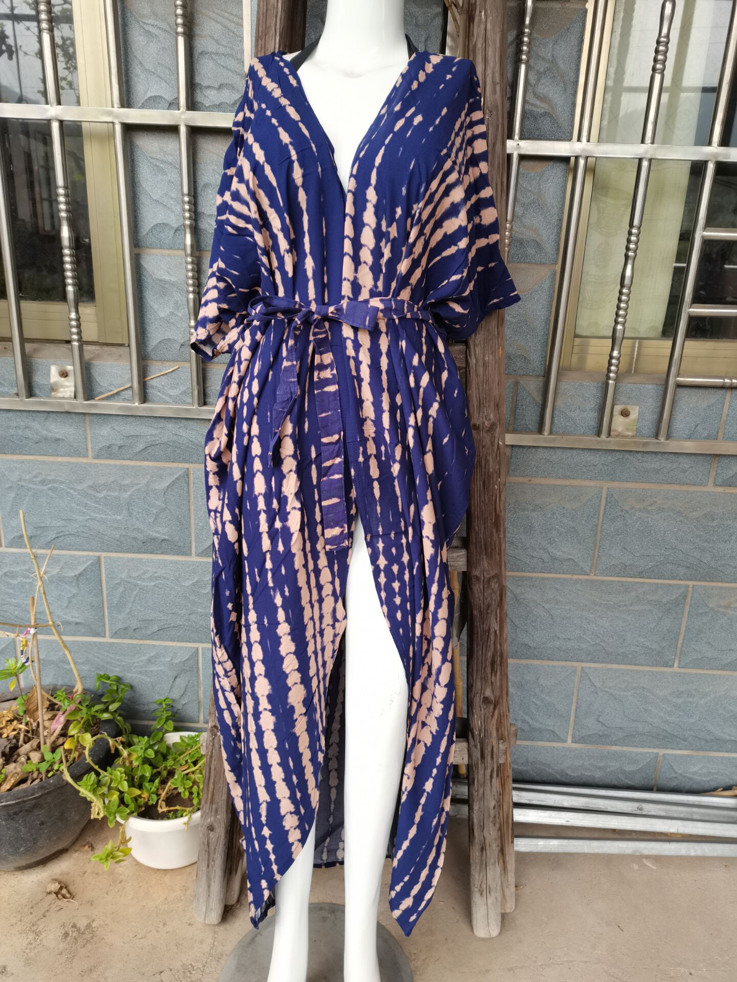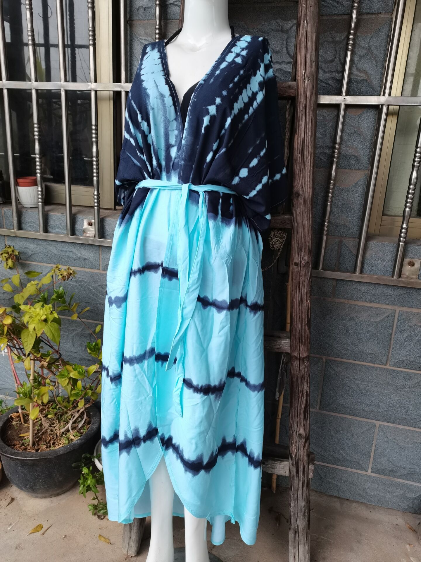 Rayon Tie-Dyed Floral Cardigan Holiday Casual Beach Bikini Cover with Straps 17 Colors