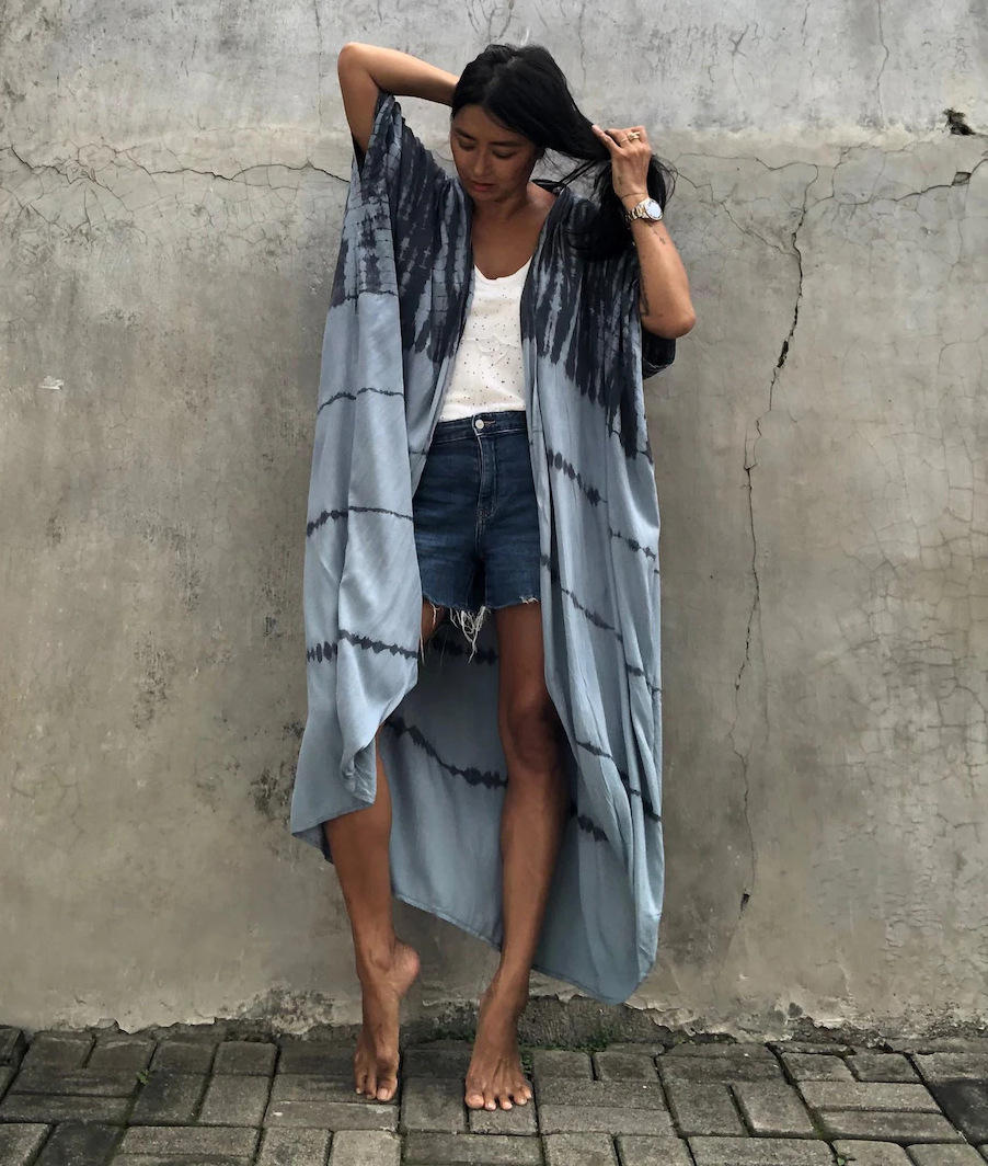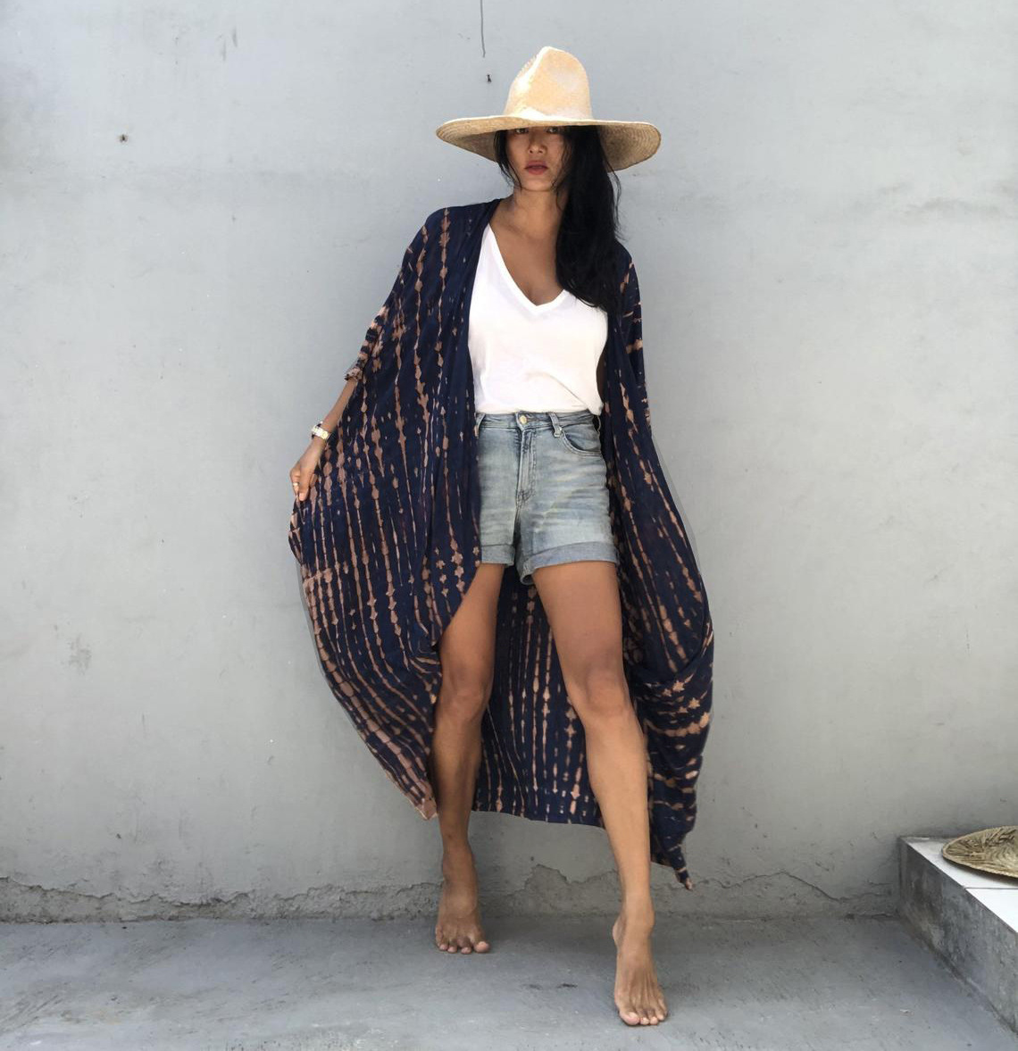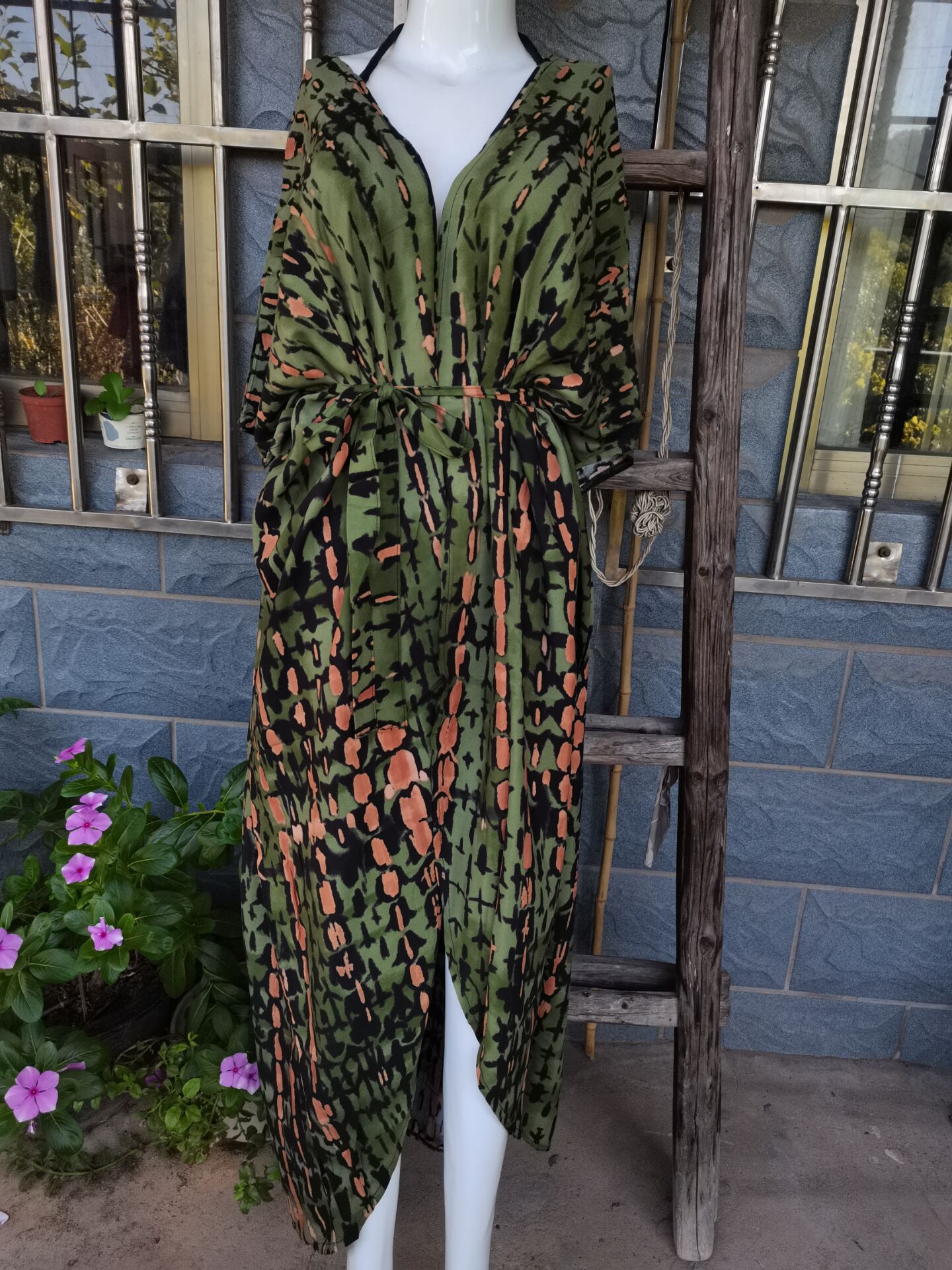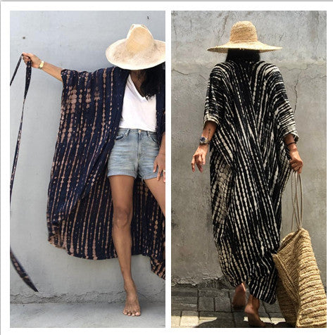 Rayon Tie-Dyed Floral Cardigan Holiday Casual Beach Bikini Cover with Straps 17 Colors