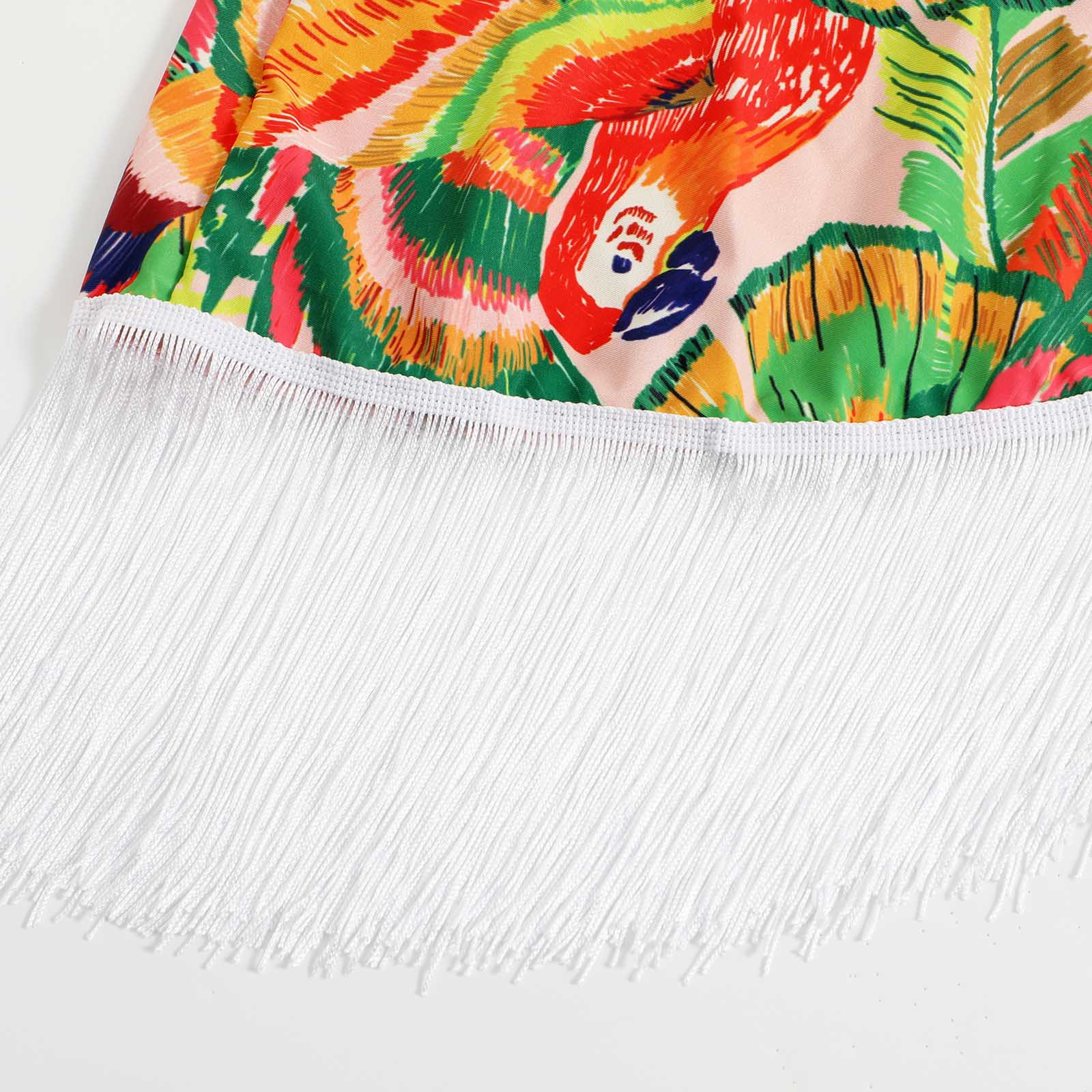 Retro One Piece Swimsuit Women Conservative Cover Belly Thin Skirt Spring Tassel Beach Skirt Set