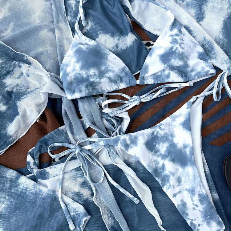 Rong Feidi Women Split Tie Dye Swimsuit Sexy Long Sleeve Sun Protection Four Piece Bikini Swimsuit