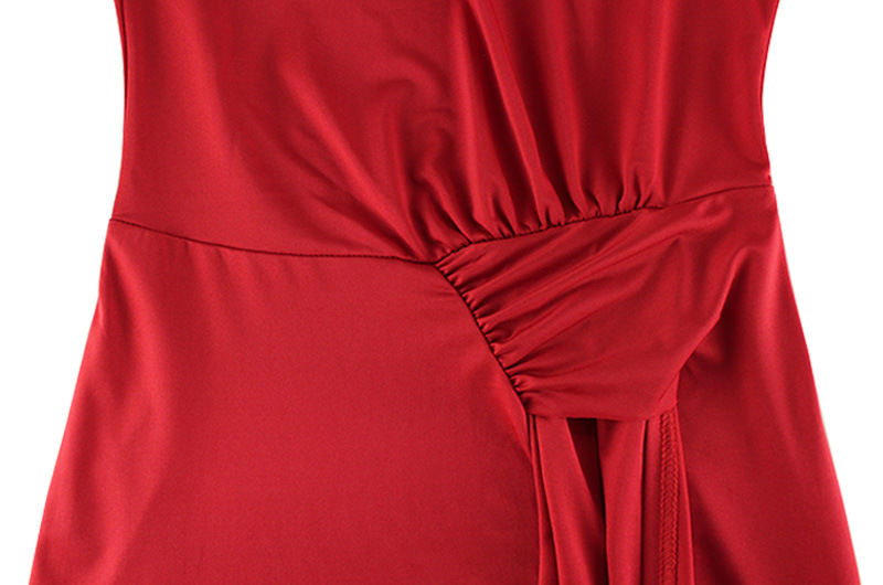 Round Neck Long Sleeve Bare Back Waist Controlled Lace up Elegant Slim Red Carpet Dress