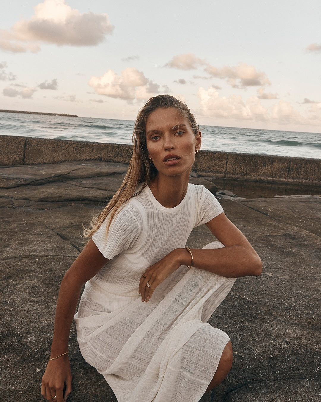 See Through Knitted Dress Casual Waist Tight Round Neck Big Pit Stripe Slimming Knitted Maxi Dress Women