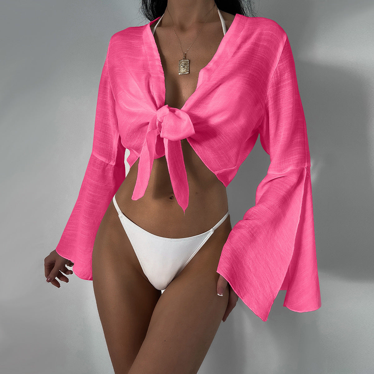 See Through Lace Up Blouse Casual Corset Overskirt Beach Vacation Sexy Bikini