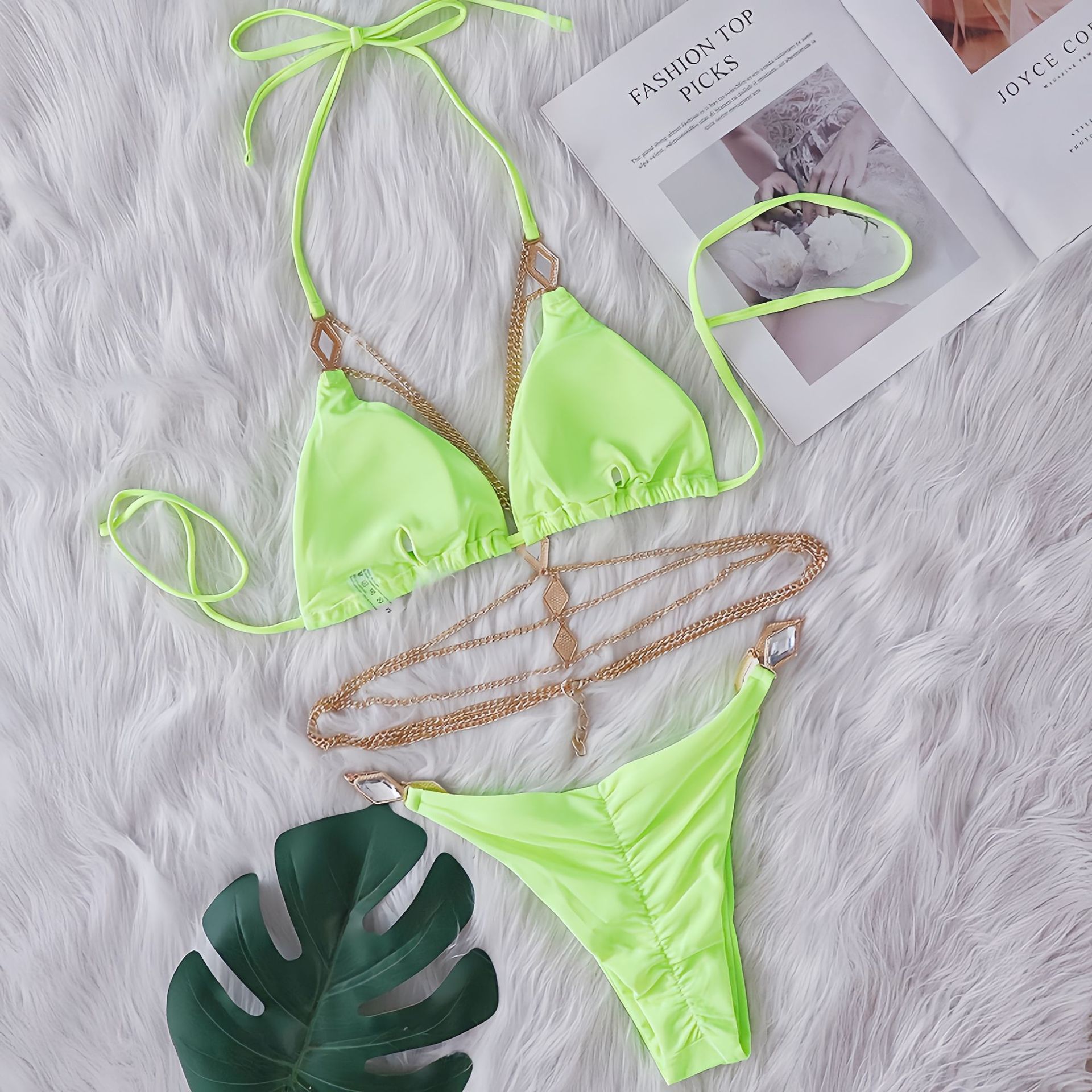 Sexy Bikini Crystal Diamond Body Cha Decorative Swimsuit Strap Split Beach Swimsuit