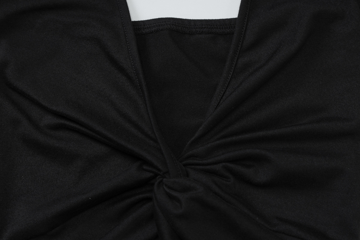 - Neckline: Halter with twisted front knot; Deep V plunge