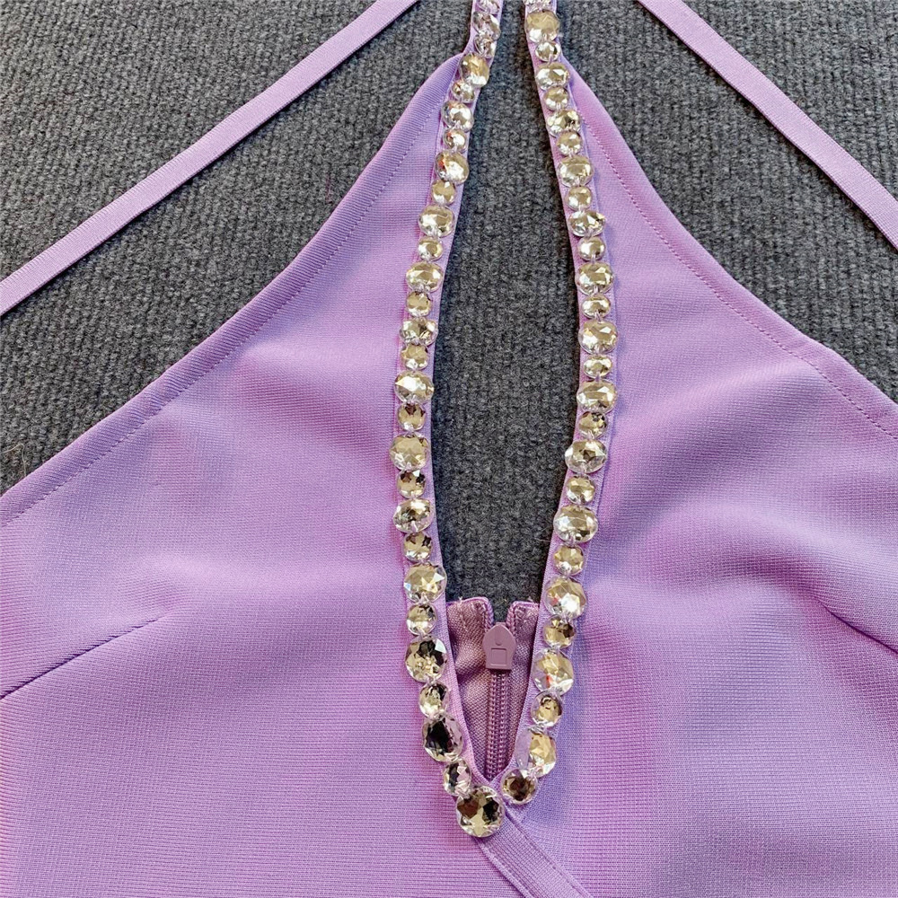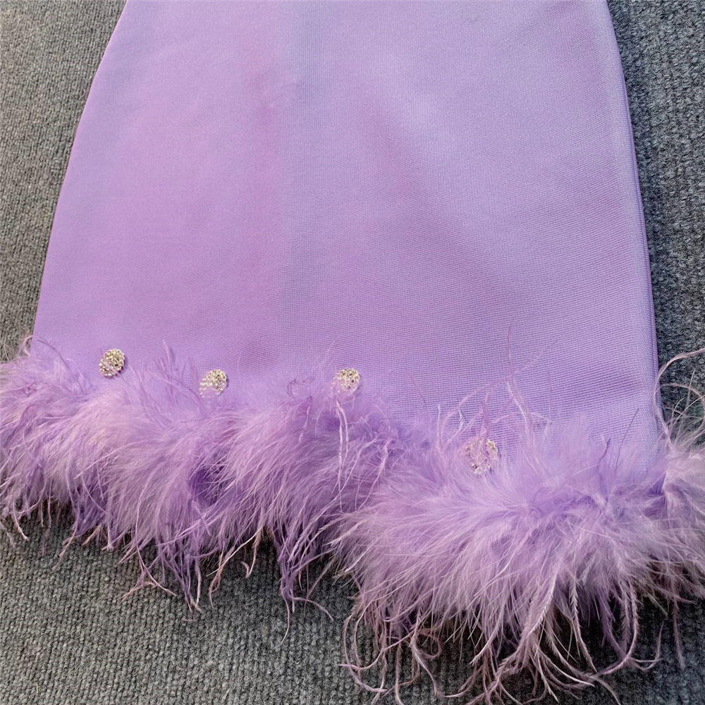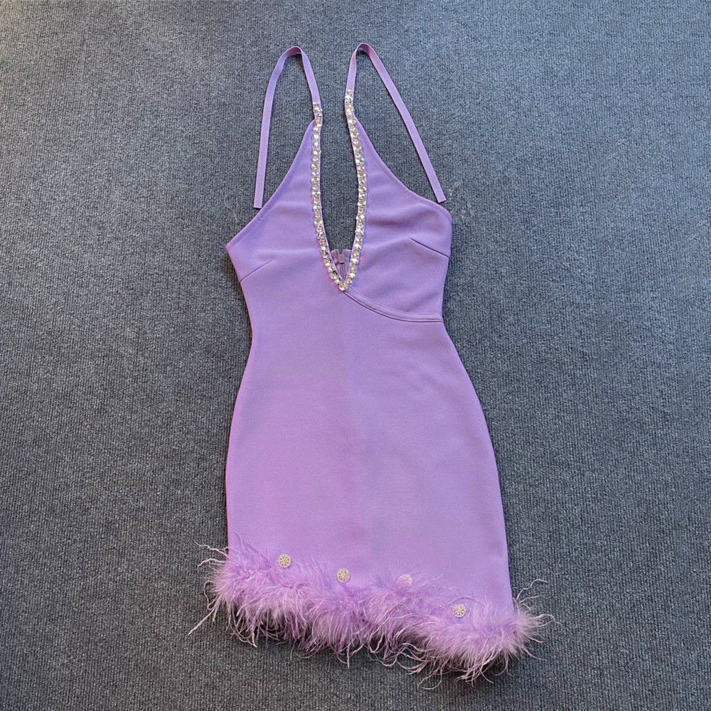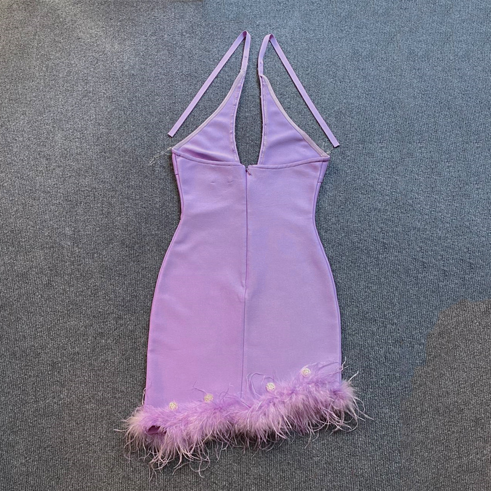 Sexy Halter Diamond Feather Stretch Bandage One Piece Dress Party Dress