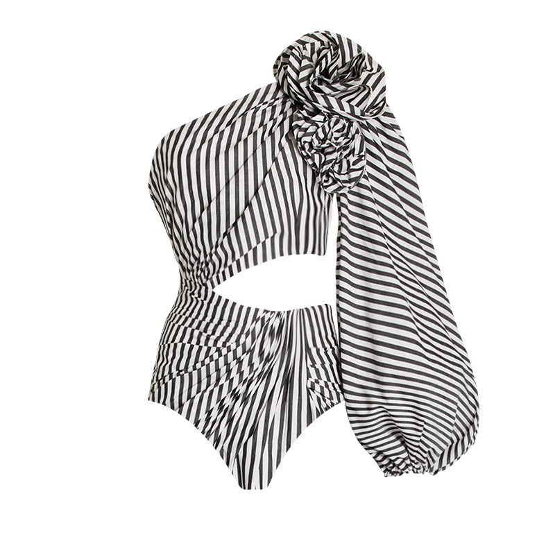 Sexy One Piece Swimsuit Women Pleated Ruffled Striped Swimsuit Bikini Mesh Maxi Dress
