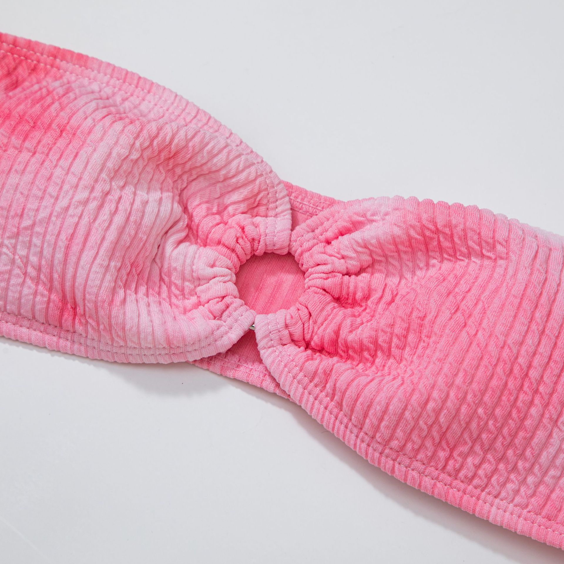 Sexy Tube Top Pink Blooming High Waist Bikini