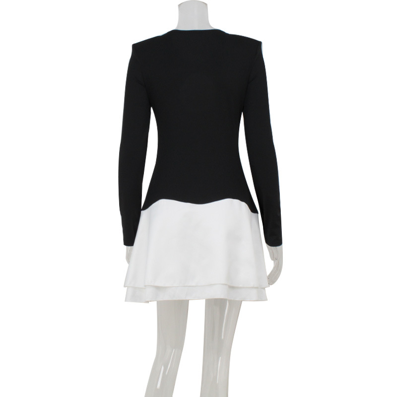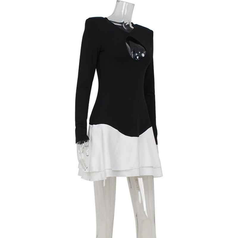 Sexy Women Chest Hollow Out Cutout out Long Sleeve Color Matching Slim Slimming Sexy Dress Women