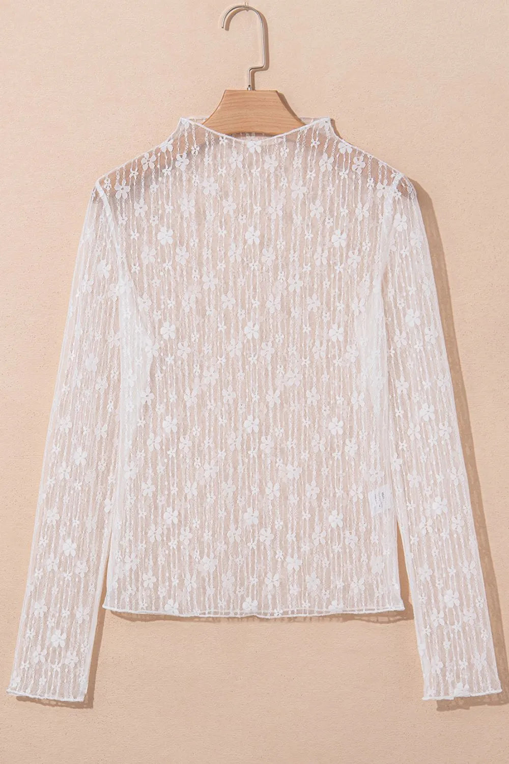 Sheer Floral Lace Long Sleeve Slim Fit Top