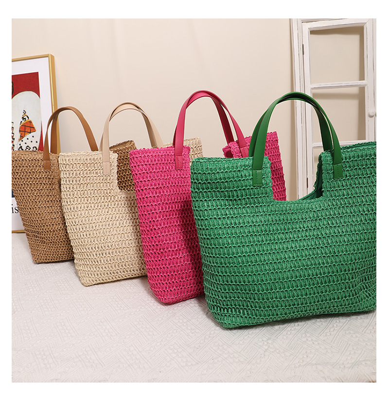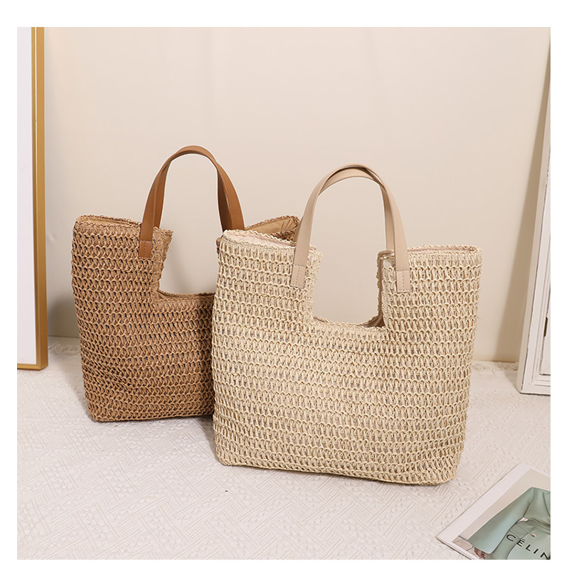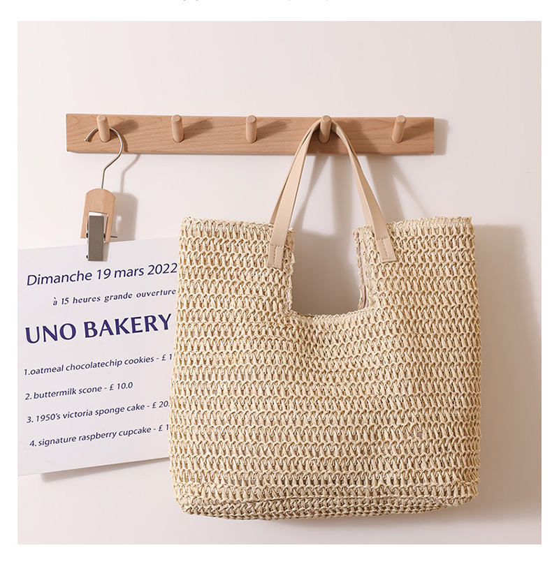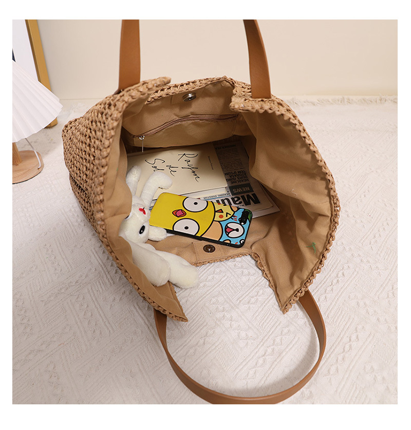 Shoulder Straw Bag Simple Large Capacity Portable Straw Bag Woven Bag Seaside Vacation Beach Bag Women Bag