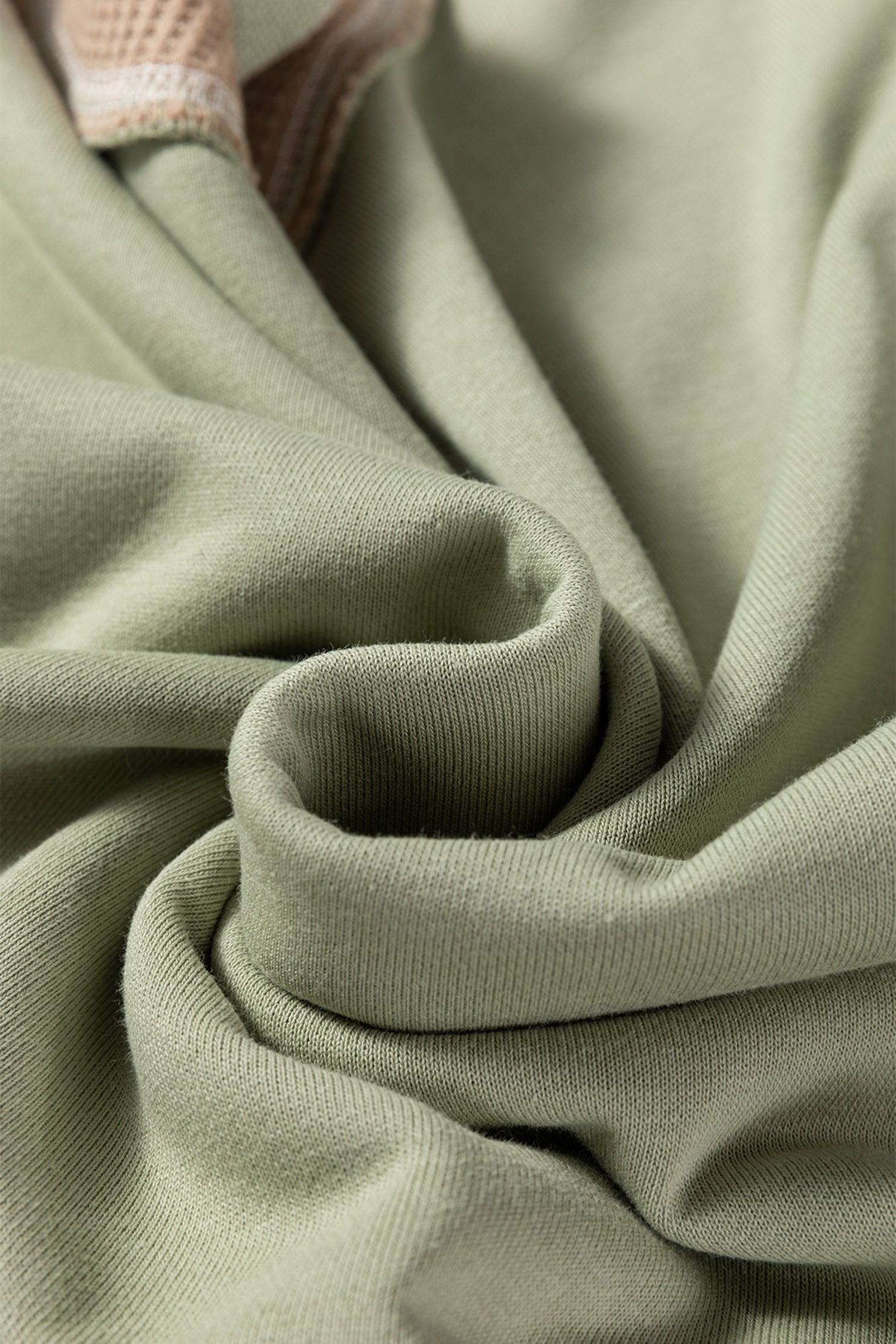 Smoke Green Color Block Patchwork Waffle Oversize Sweatshirt