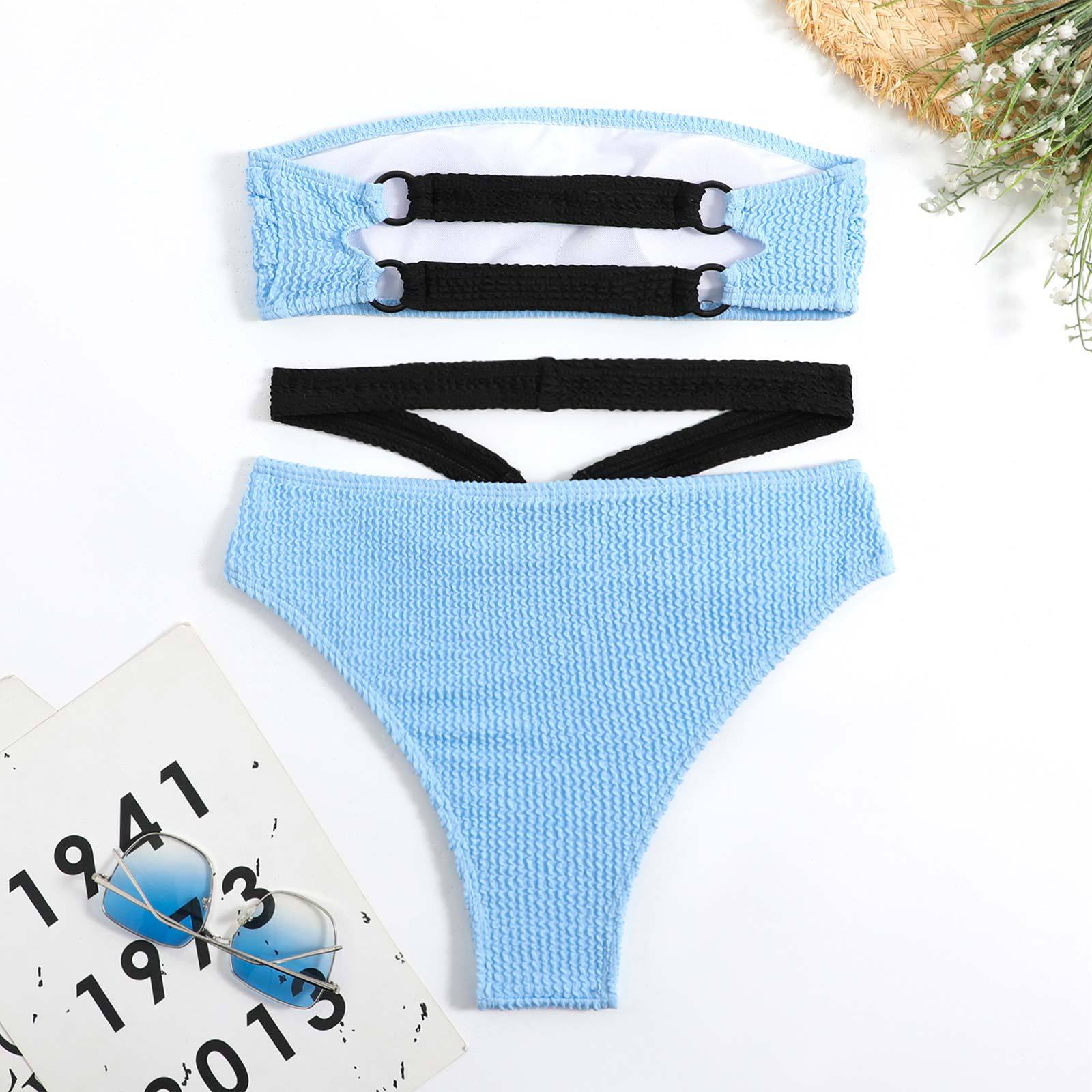 Solid Color Bikini Swimsuit Women Wave Pattern Split Swimsuit