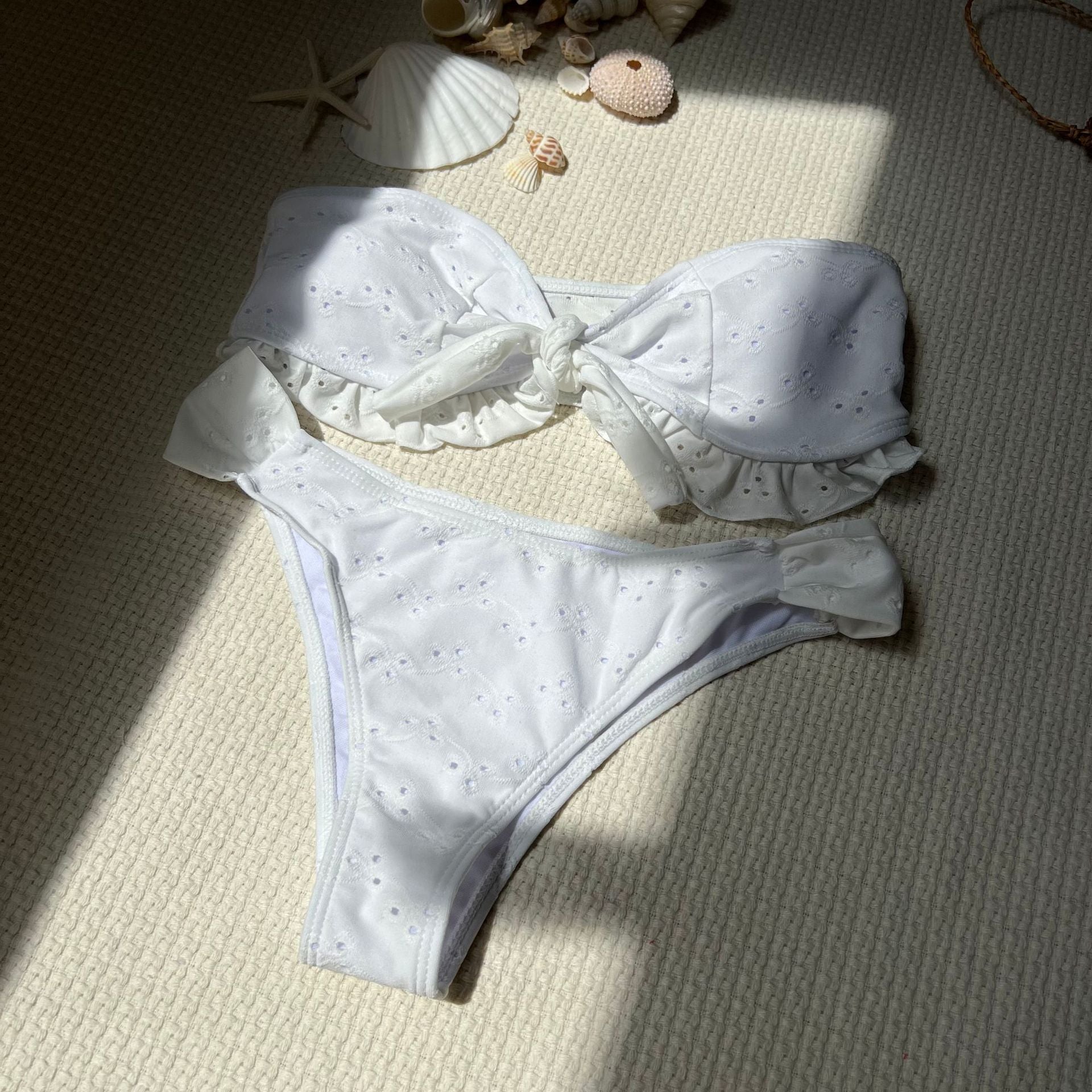 Solid Color Floral Special Fabric Tube Top Split Swimsuit Swimwear Bikini Bikini
