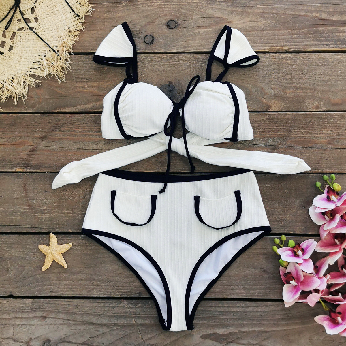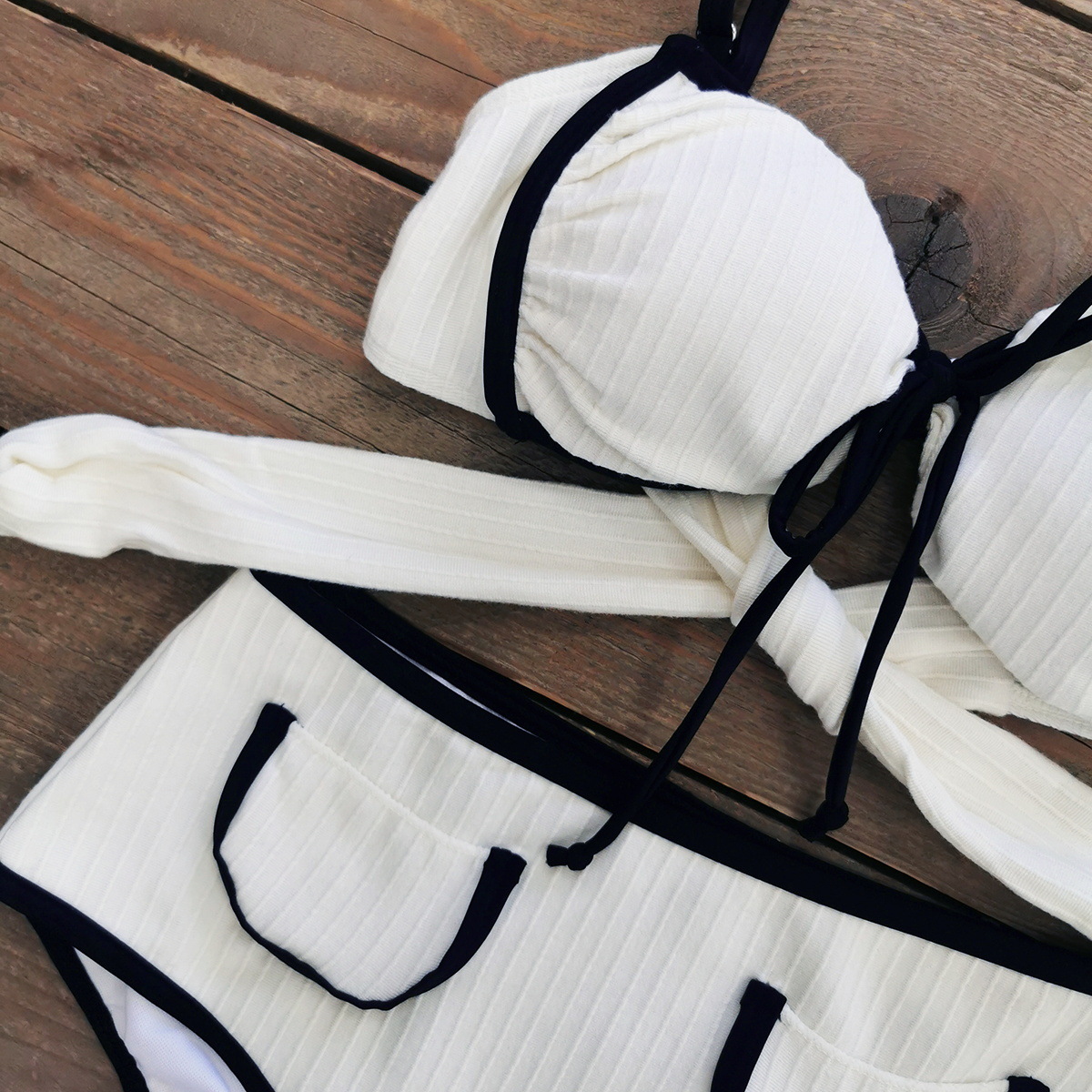Solid Color High Waist Bikini Simple Split Swimsuit Women Sexy Bikini Bella Mia