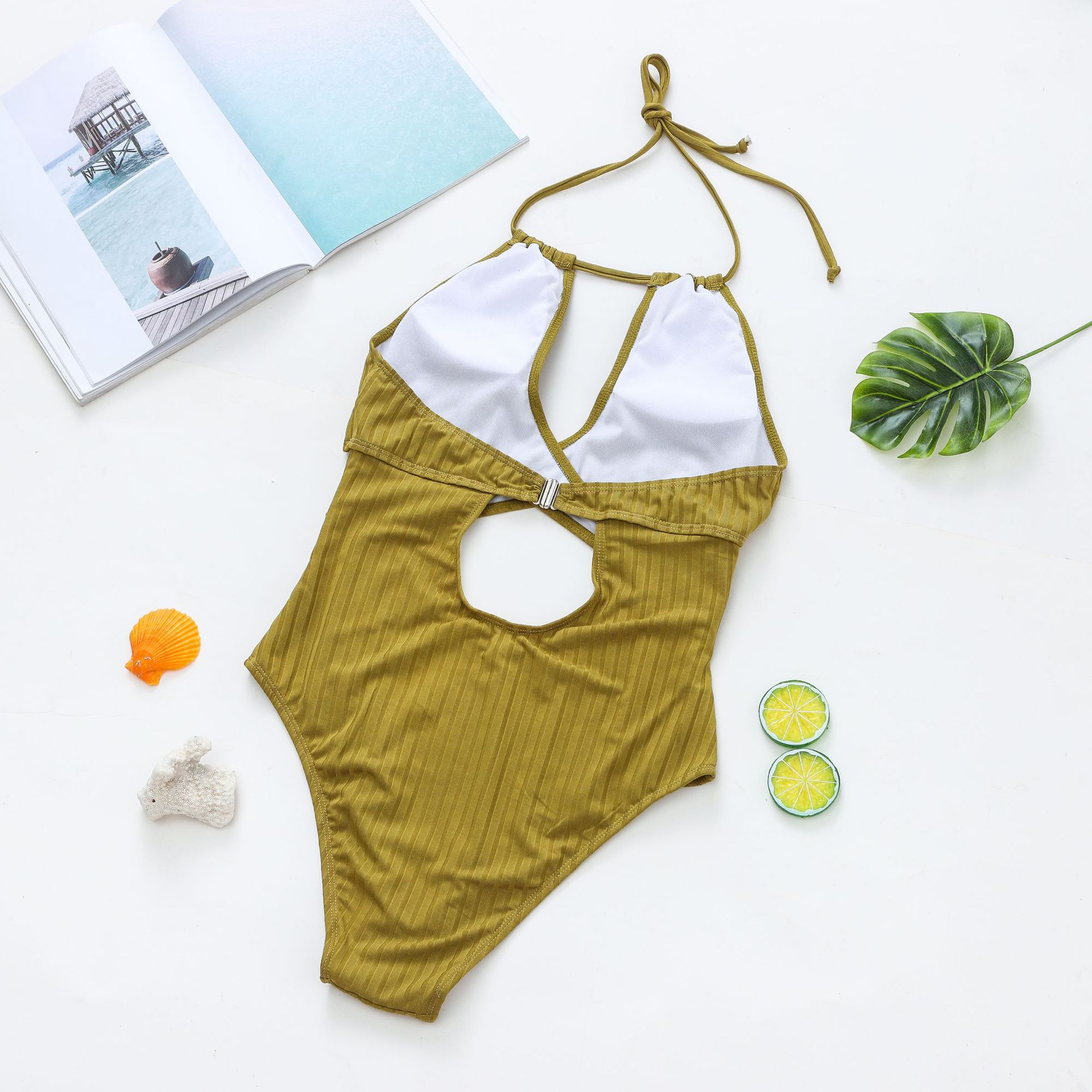 Solid Color One Piece Cross Belt Bikini Sexy Halter Swimsuit Women Swimsuit