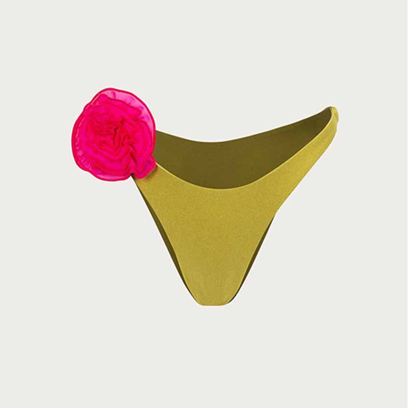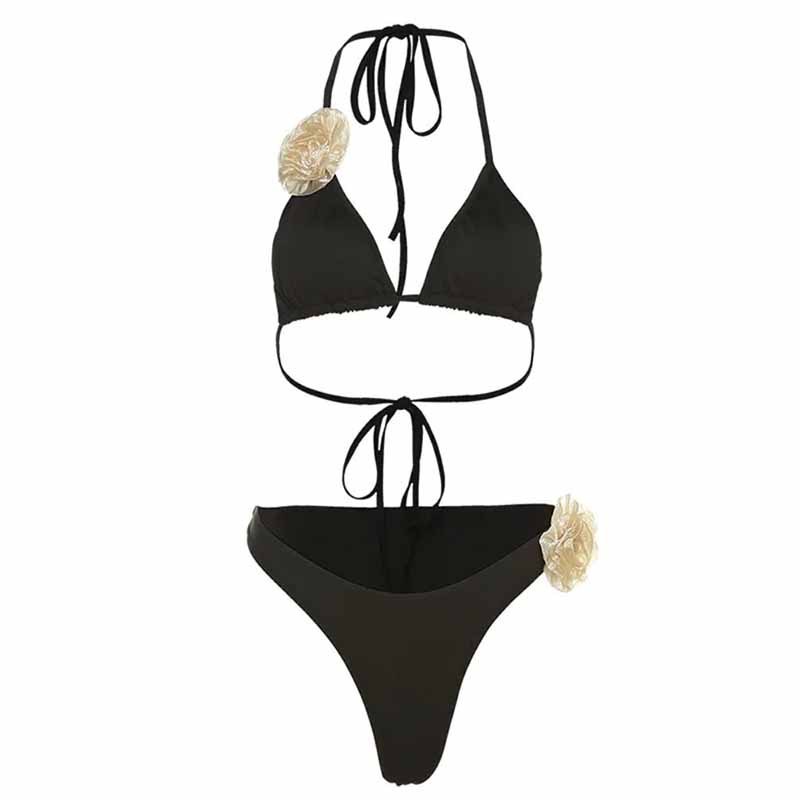 Solid Color Sexy Three Dimensional Floral Design Split Women Bikini Swimsuit
