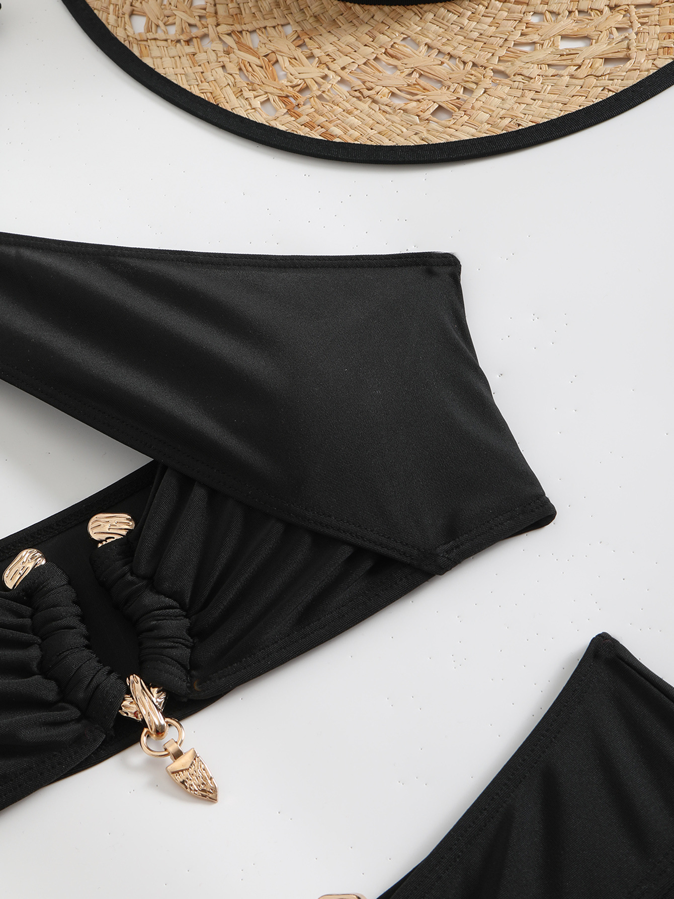 Solid Color Snake Accessories Sexy High Waist Tube Top Split Swimsuit Swimwear Bikini