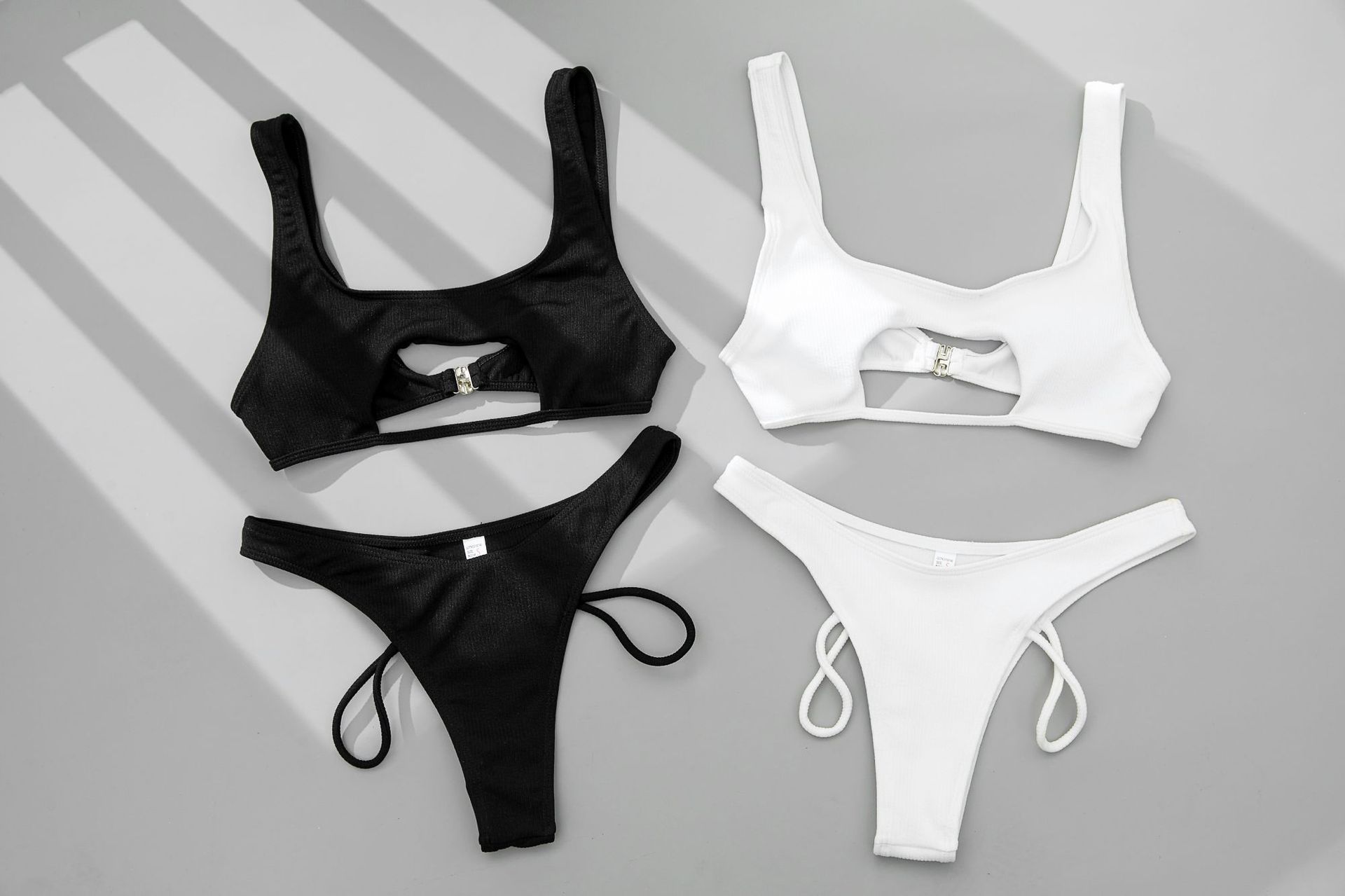 Solid Color Split Hollow Out Cutout Snake Fabric Swimsuit Women Sexy Halter Bikini