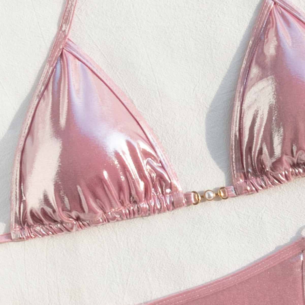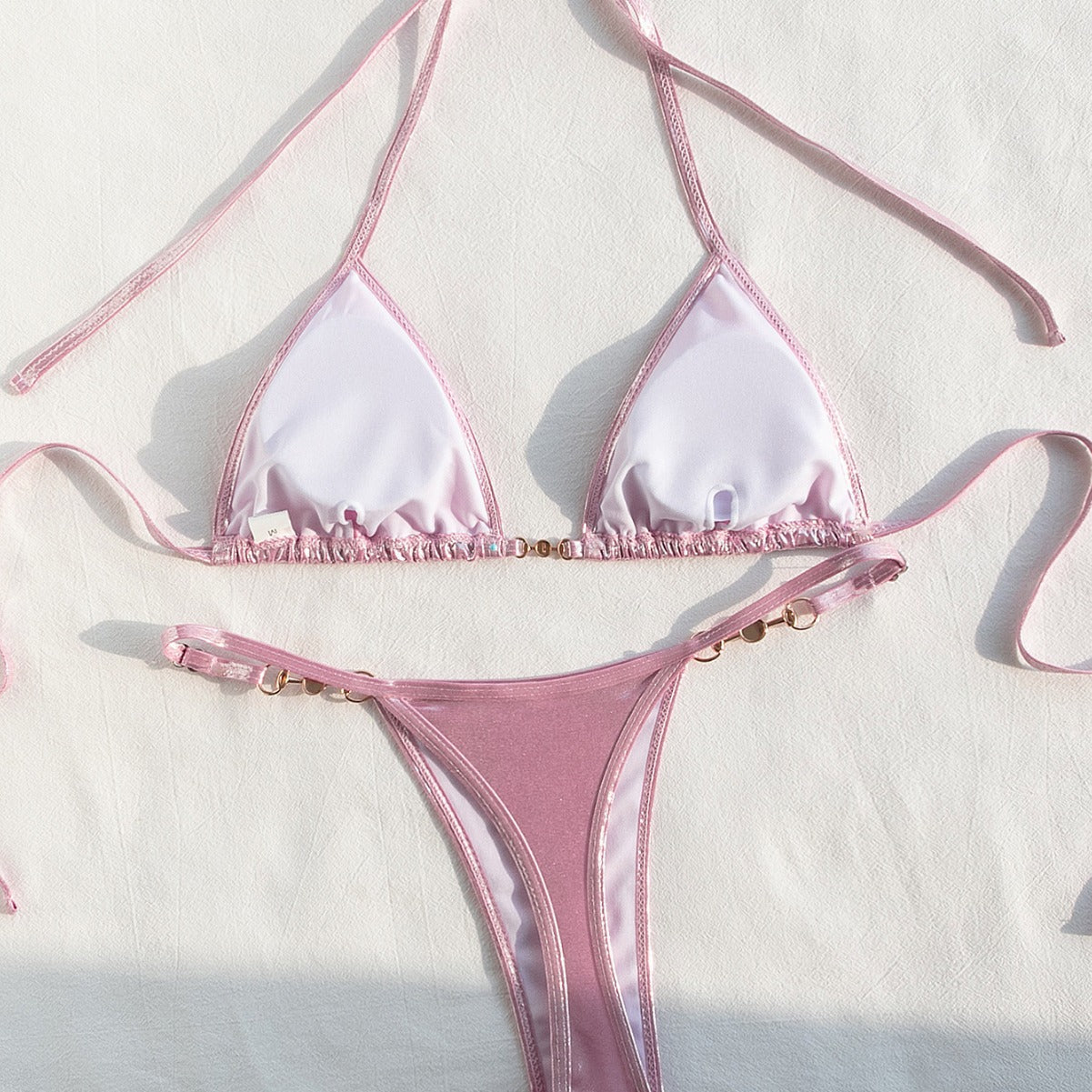 Split Swimsuit Women Sexy Backless Ornament Lace up Bikini Triangle Bag Bikini