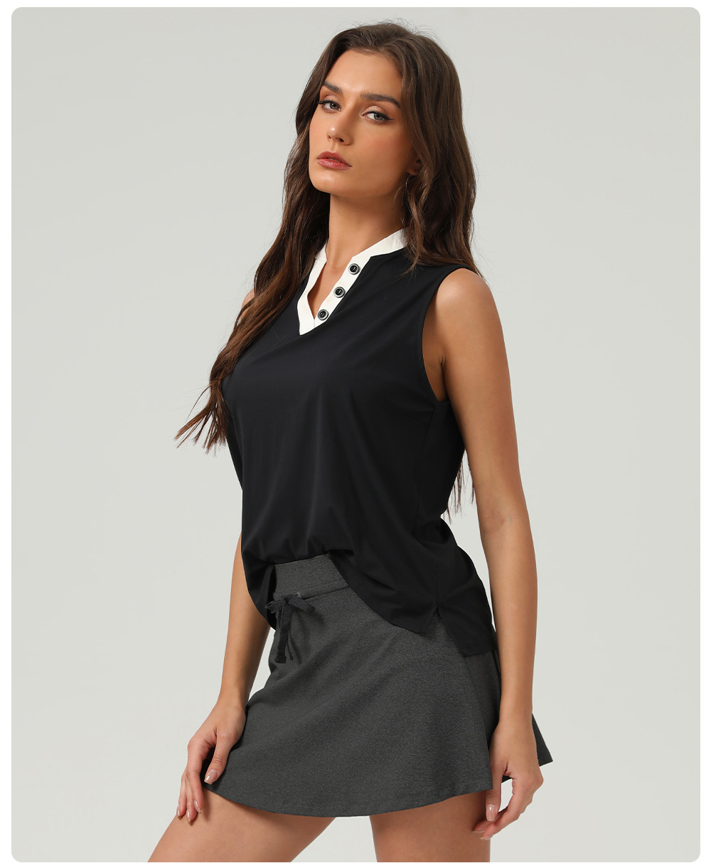 Sports Casual Sleeveless Vest Top V neck Color Block Yoga Breathable Loose T shirt Slimming Workout Clothes