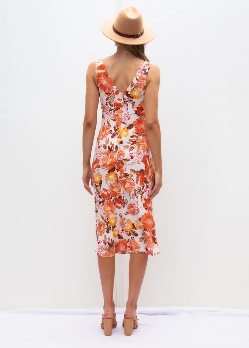 Spring Front Back V-neck Sleeveless Printed Slim-Fit Sexy Dress Women Clothing Floral Burst