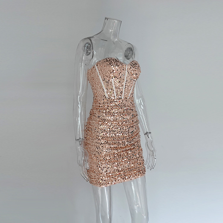 Spring Pure Sexy Design Sequined Tube Top Boning Corset Dress Elegant Slim Hip for Women