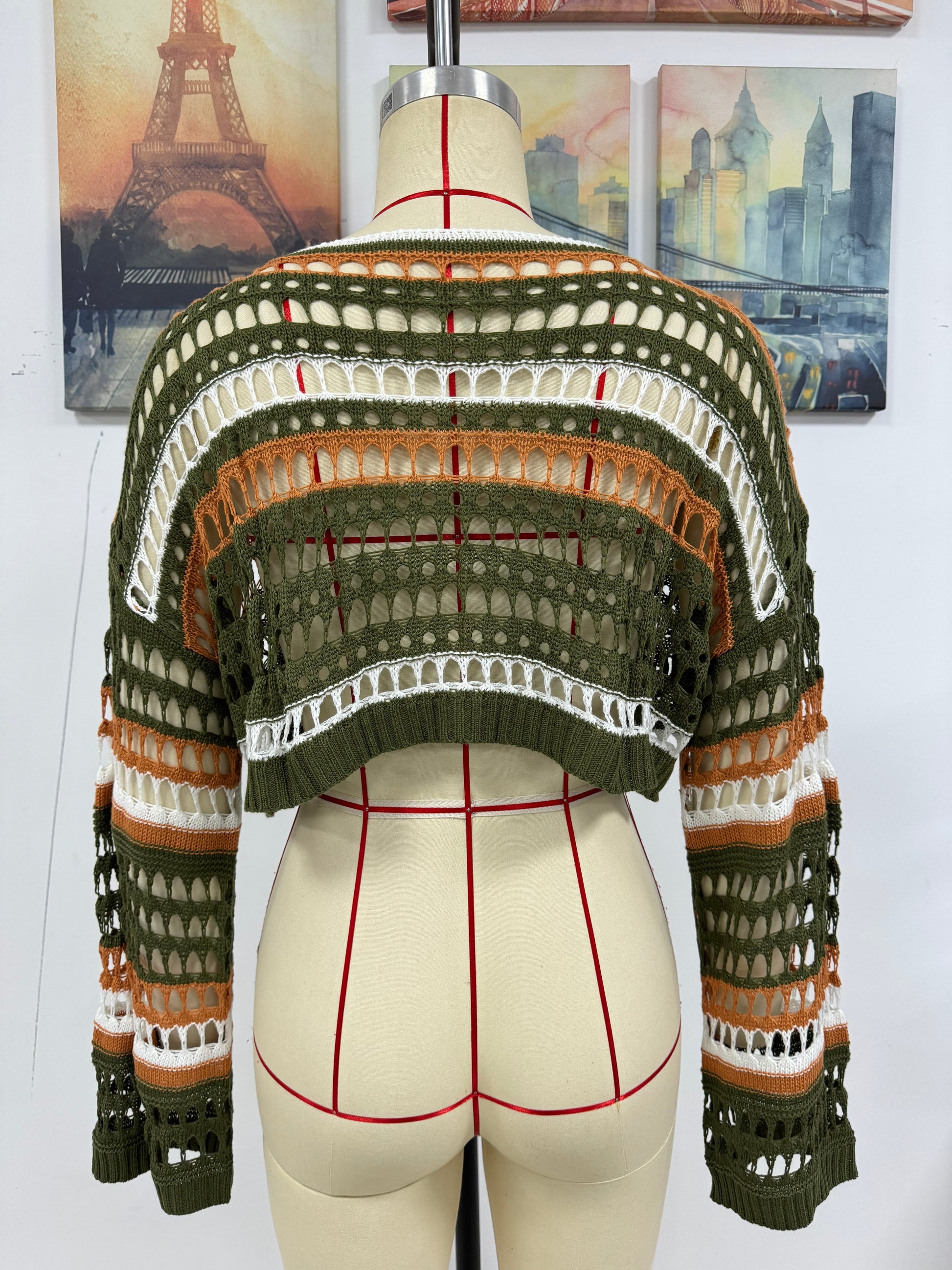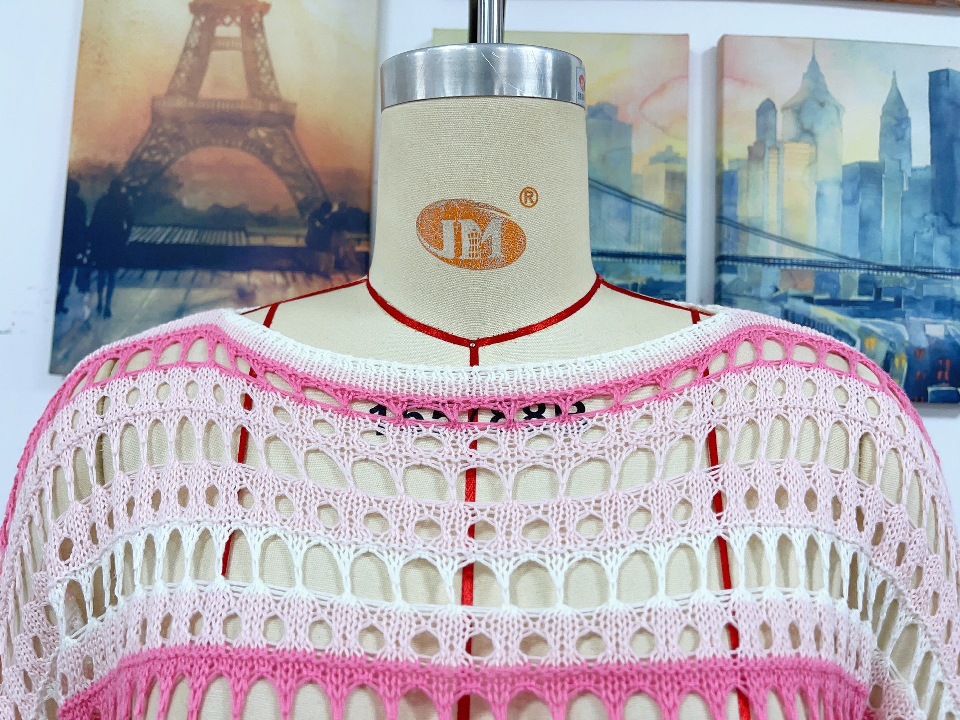 Spring Summer Women Hollow Out Cutout Striped Stitching Sexy Pullover Women Knitwear