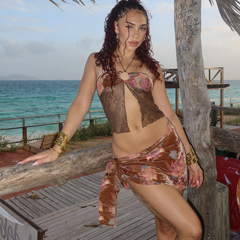 Spring Summer Women Sexy Cropped Halterneck Vest Bikini Three Piece Sets