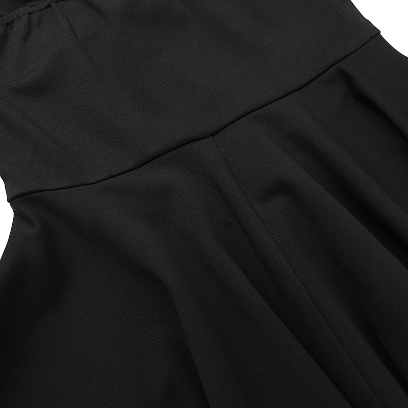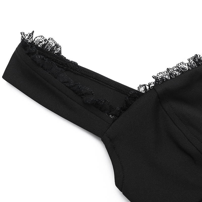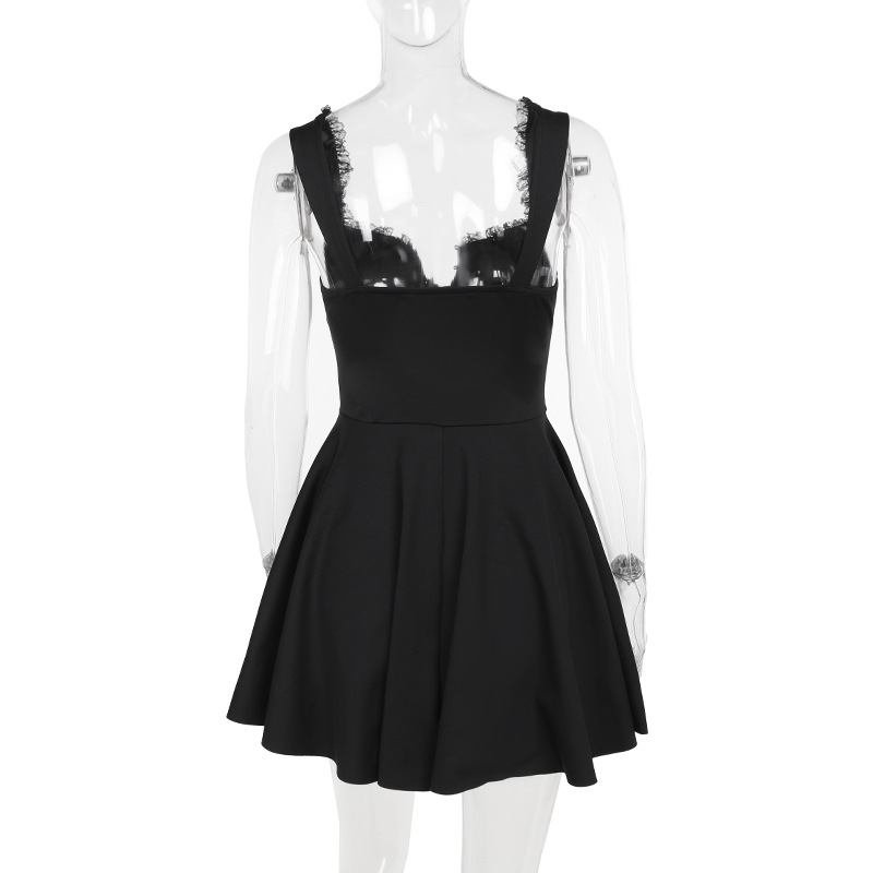 The A-line dress offers a short length with a structured, flared skirt that flatters the silhouette. The garment is crafted from polyester for a lightweight, easy-care experience and a soft, breathable feel in warm weather. A soft pastel yellow tone enhances the retro-inspired look. The design features a V-neckline with wide straps trimmed in delicate lace, plus a small bow and button accent for subtle charm. The pattern is solid, with decorative lace, tulle, or fishnet elements providing texture without overpowering the clean lines. Sleeveless construction improves airflow, while the regular fit ensures comfortable movement for daily wear or evening occasions. This dress pairs well with heels or sandals and can be styled with simple accessories for a polished appearance at parties or club events. Main composition is polyester, designed for versatile, warm-season styling.