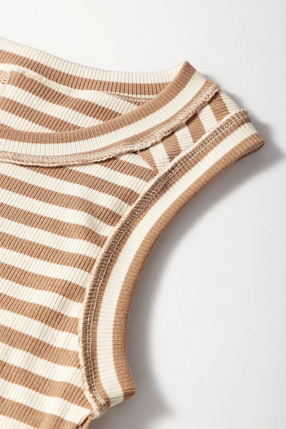 Stripe Exposed Seam Trim Round Neck Sleeveless Top