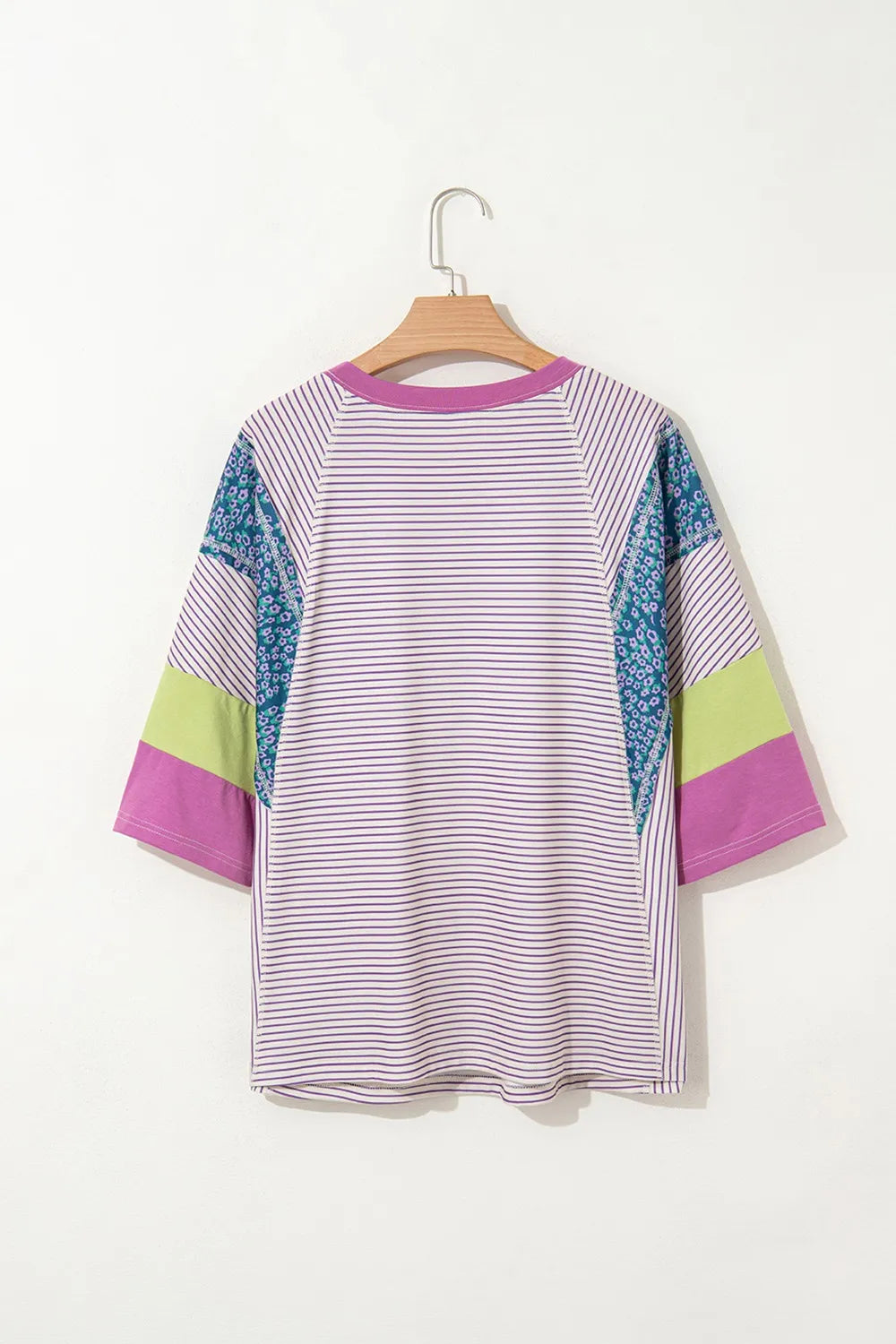 Stripe Floral Color Block Raw Edge Patchwork Top