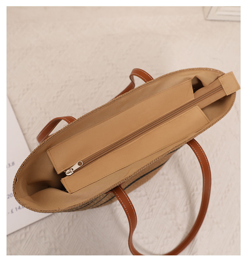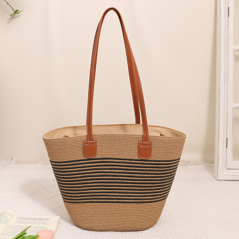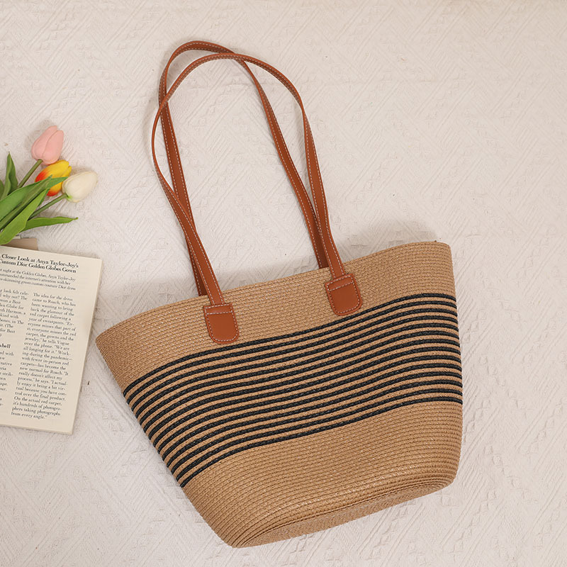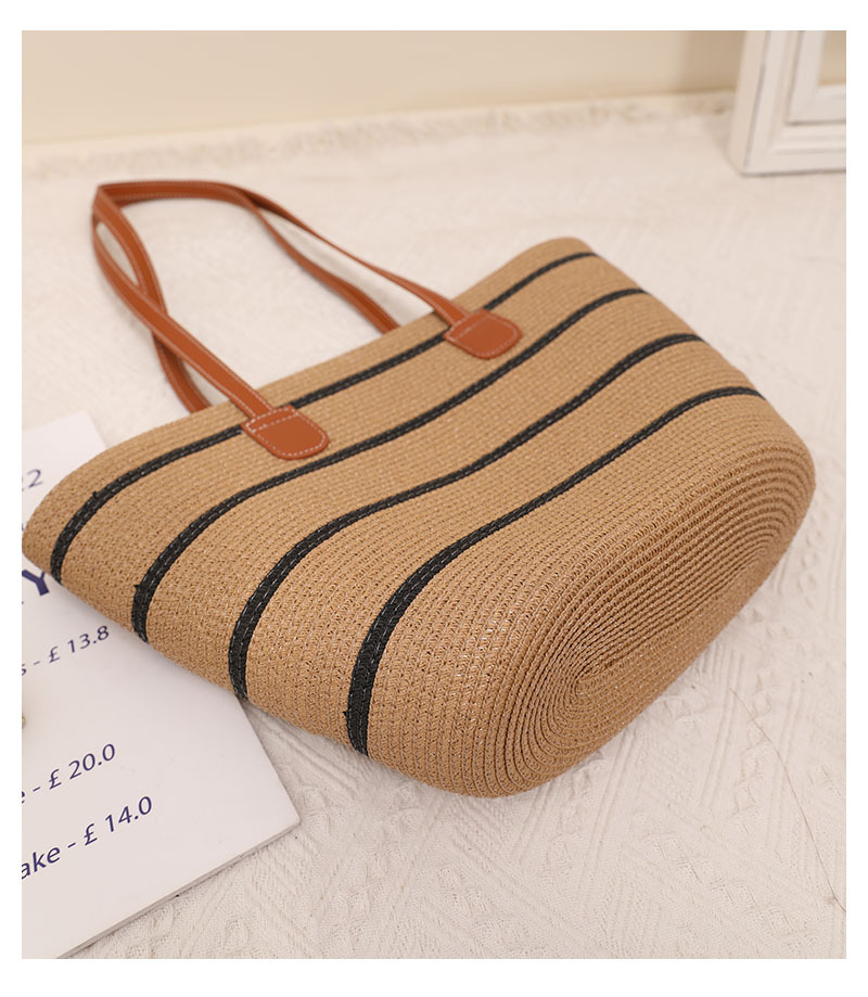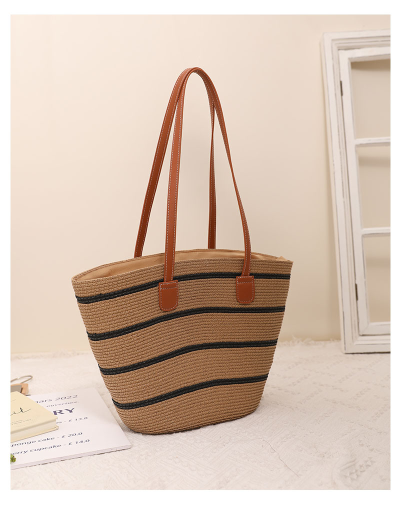 Striped Shoulder Straw Bag Woven Bag Summer Large Capacity Casual All Match Women Seaside Beach Rattan Woven Bag