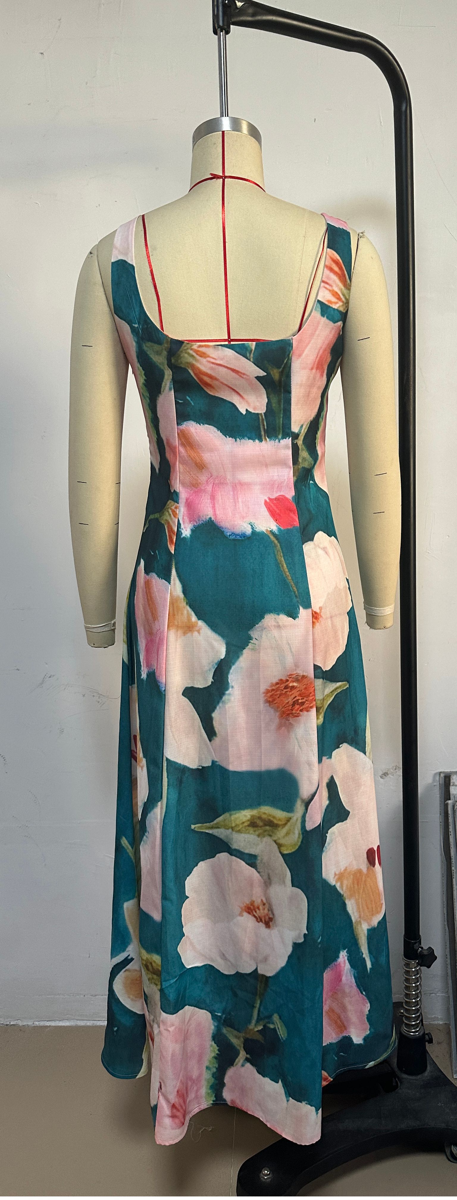 Summer Dress Printed Spaghetti Straps Slimming Dress