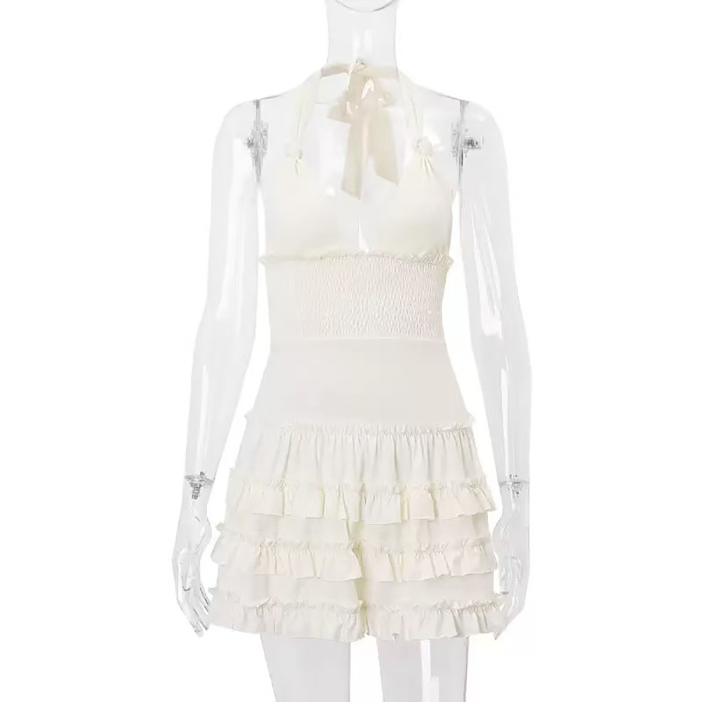 Summer Elegant Sexy Sexy Dress Halter Deep V Plunge Olive Slim Fit Backless Tiered Dress