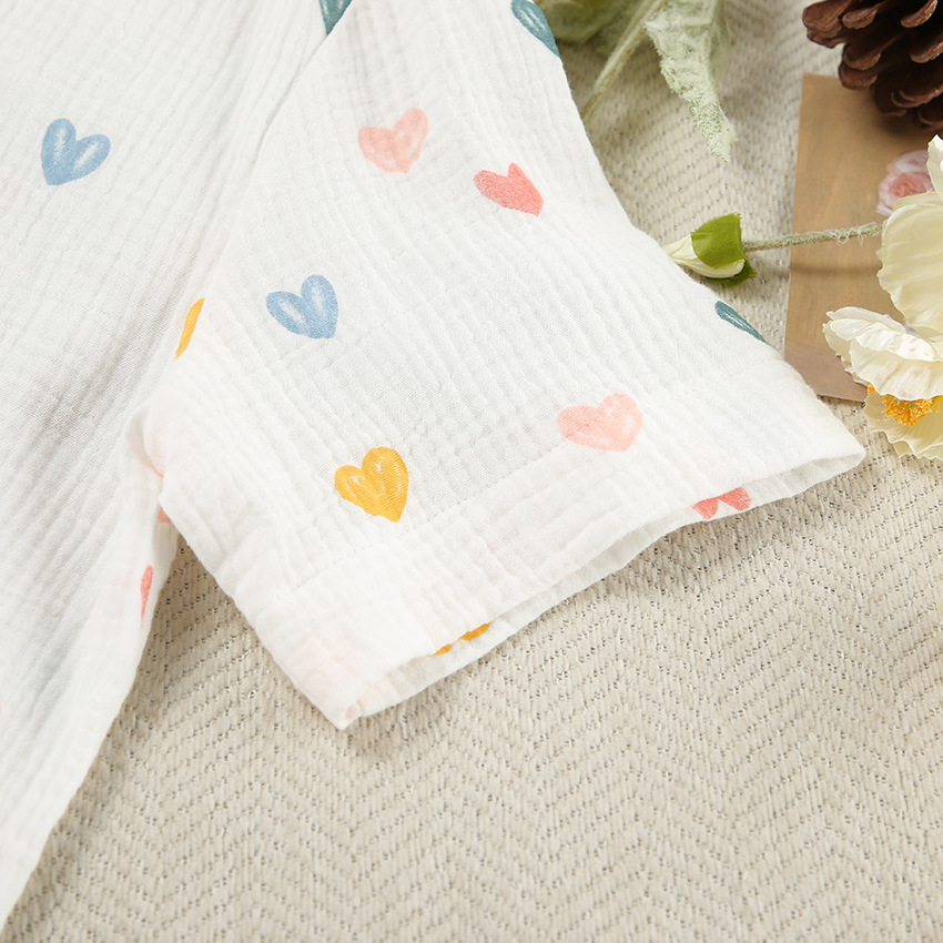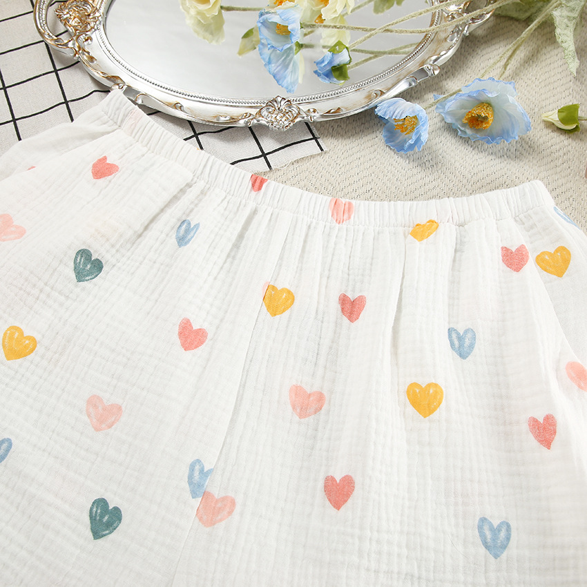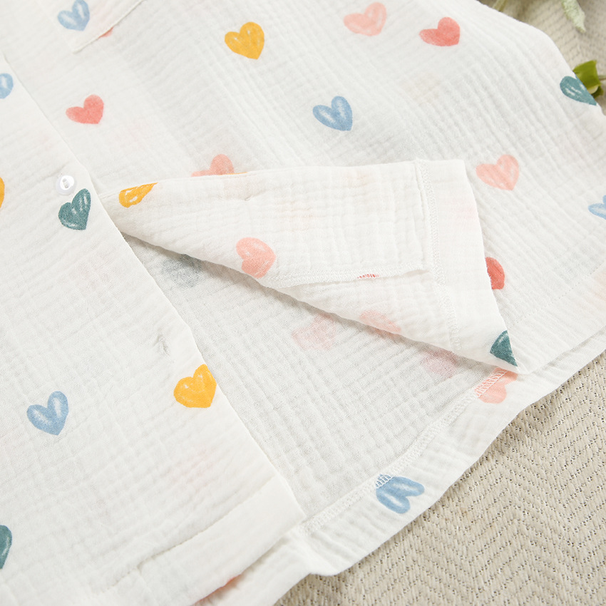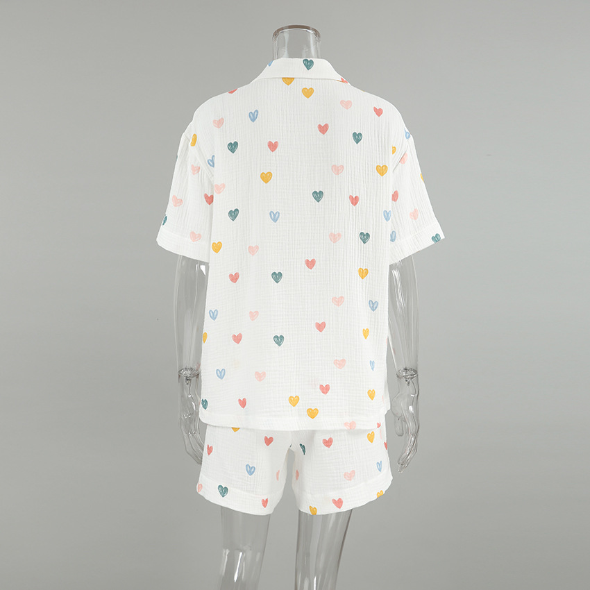Summer Layer Crepe Heart Printing Pajamas Two Piece Cardigan Half Sleeve Shorts Women Homewear