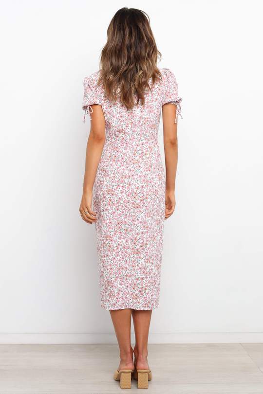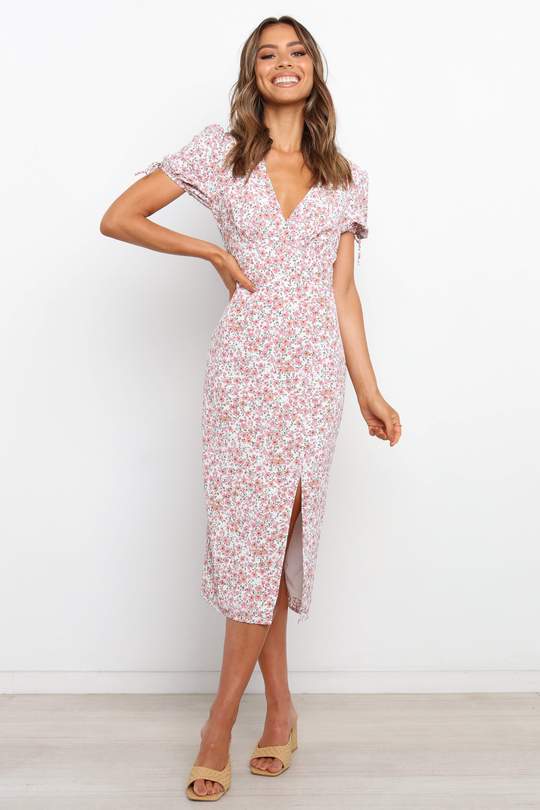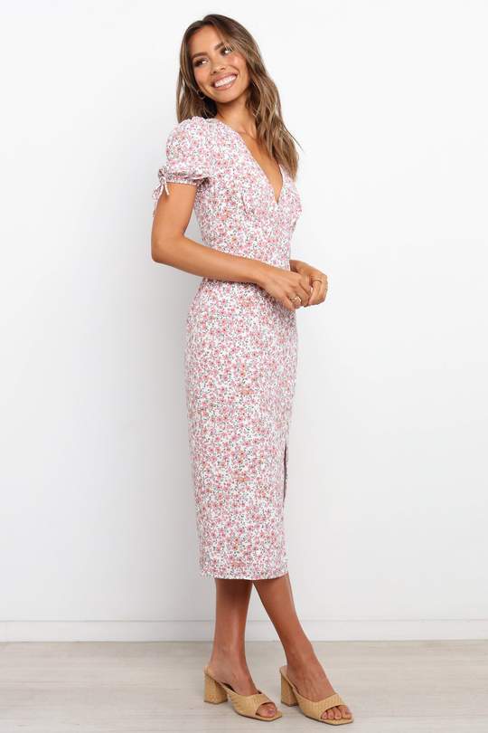 Summer Popular Short Sleeve Printed V neck Sexy Slit Dress for Women