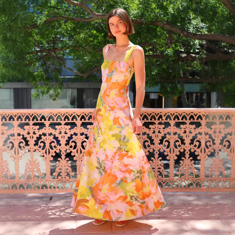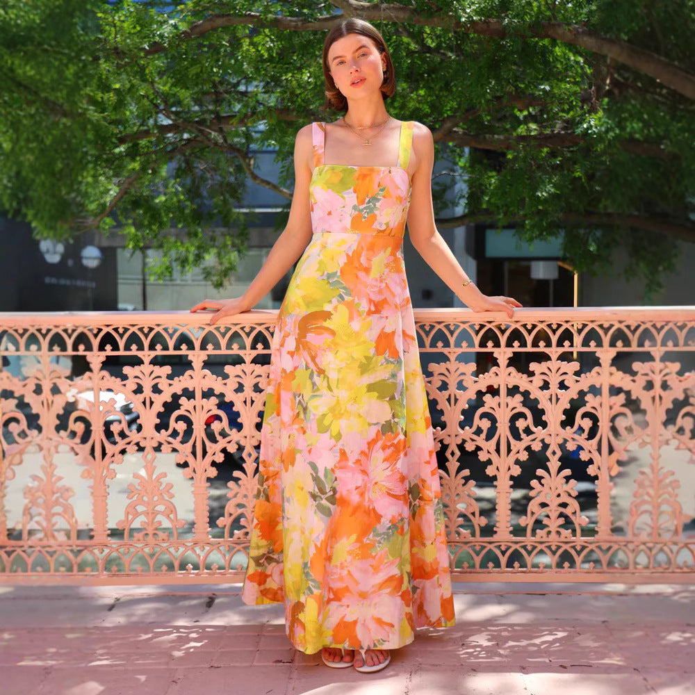 Summer Vacation Strap Dress Floral Swing Dress