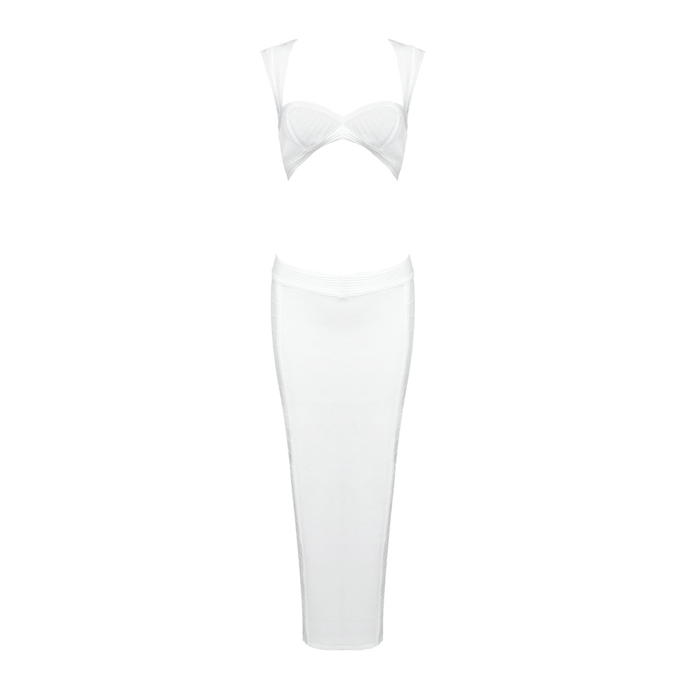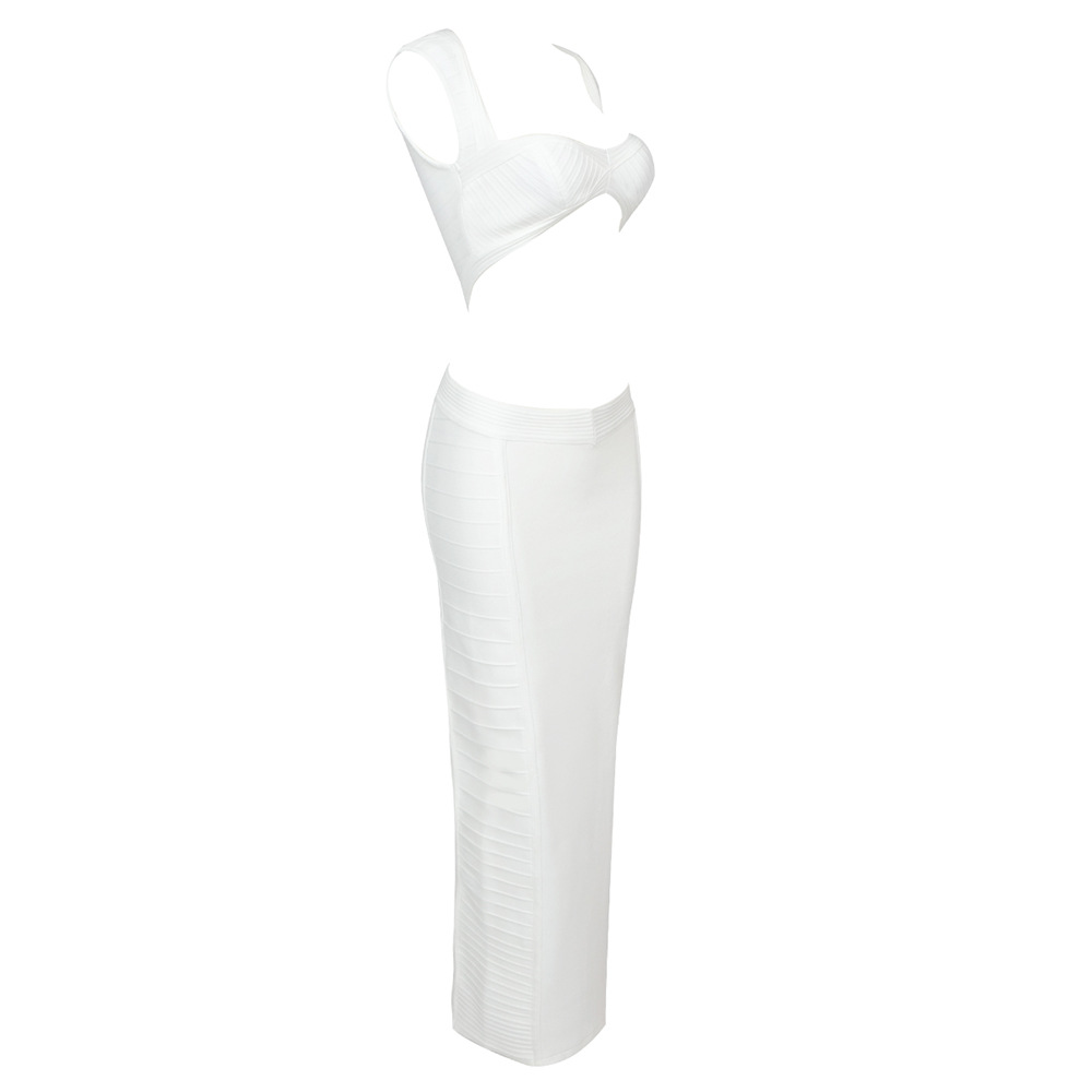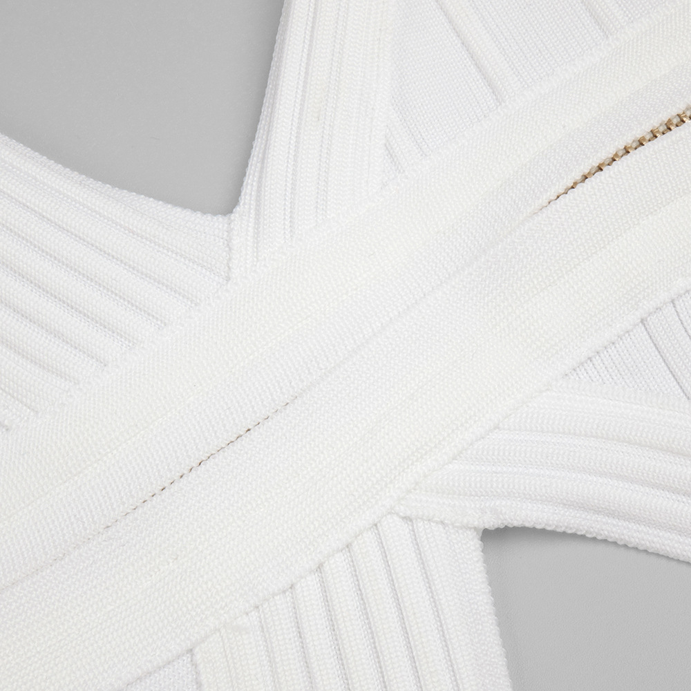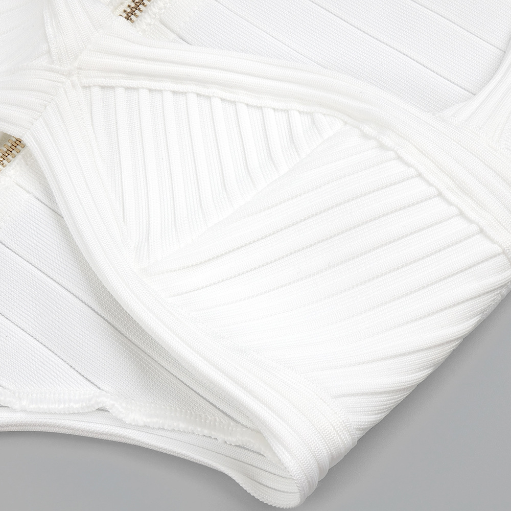 The dress features a sleek, bodycon silhouette crafted from stretch spandex for a close, comfortable fit. The solid white fabric offers a crisp, summer-ready look with modern detailing. A long zipper closure, structured cutouts, and a subtle split provide edgy accents while preserving wearability. The V-neck neckline enhances the silhouette, and the sleeveless design keeps you cool in warm weather.